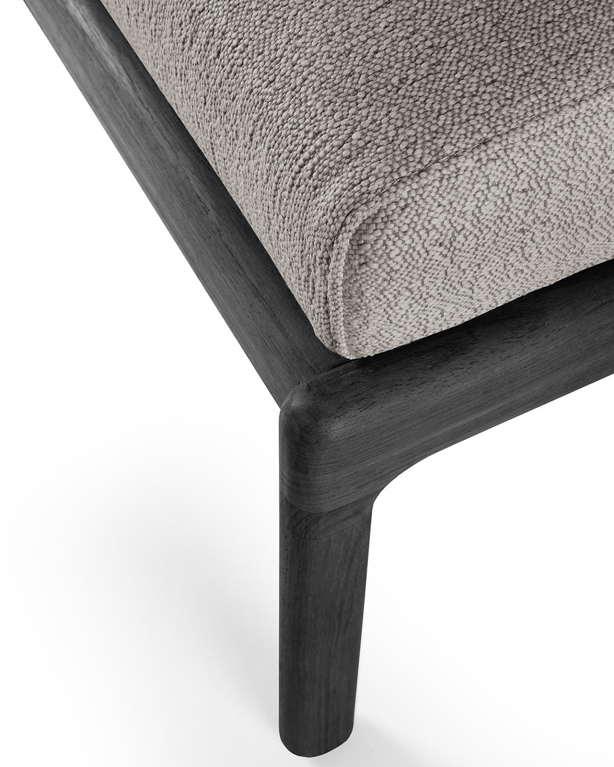 Close-up of the textured gray fabric on the Ethnicraft Jack Outdoor Footstool - Black Teak with Mocha, showing a uniform, subtly woven pattern made from small, tightly interlaced threads.