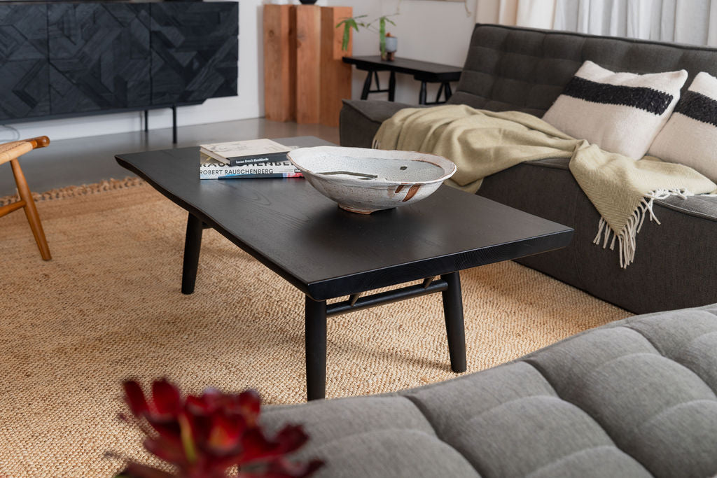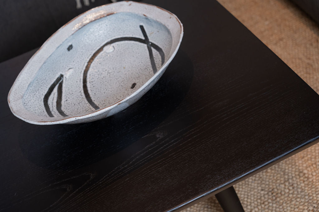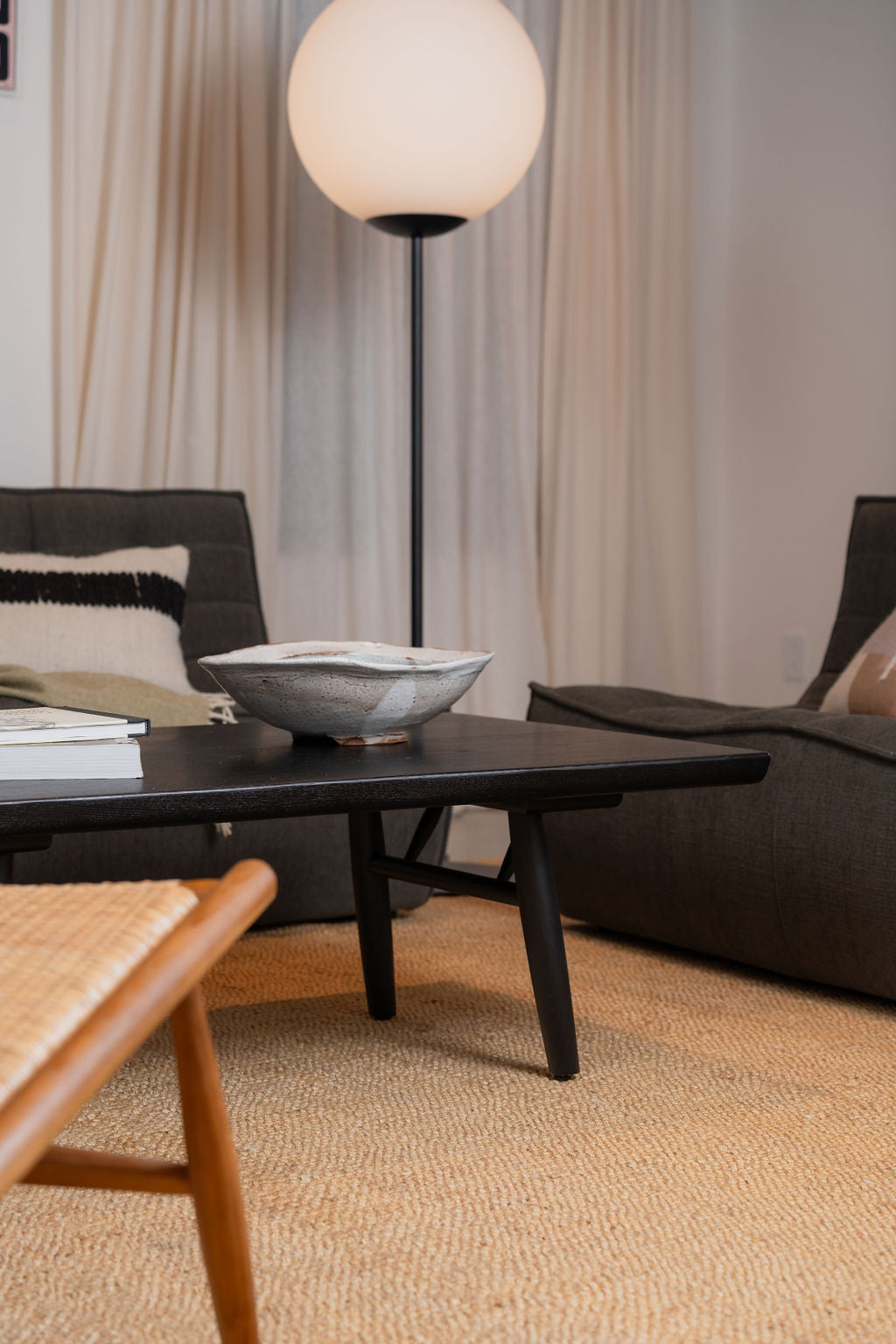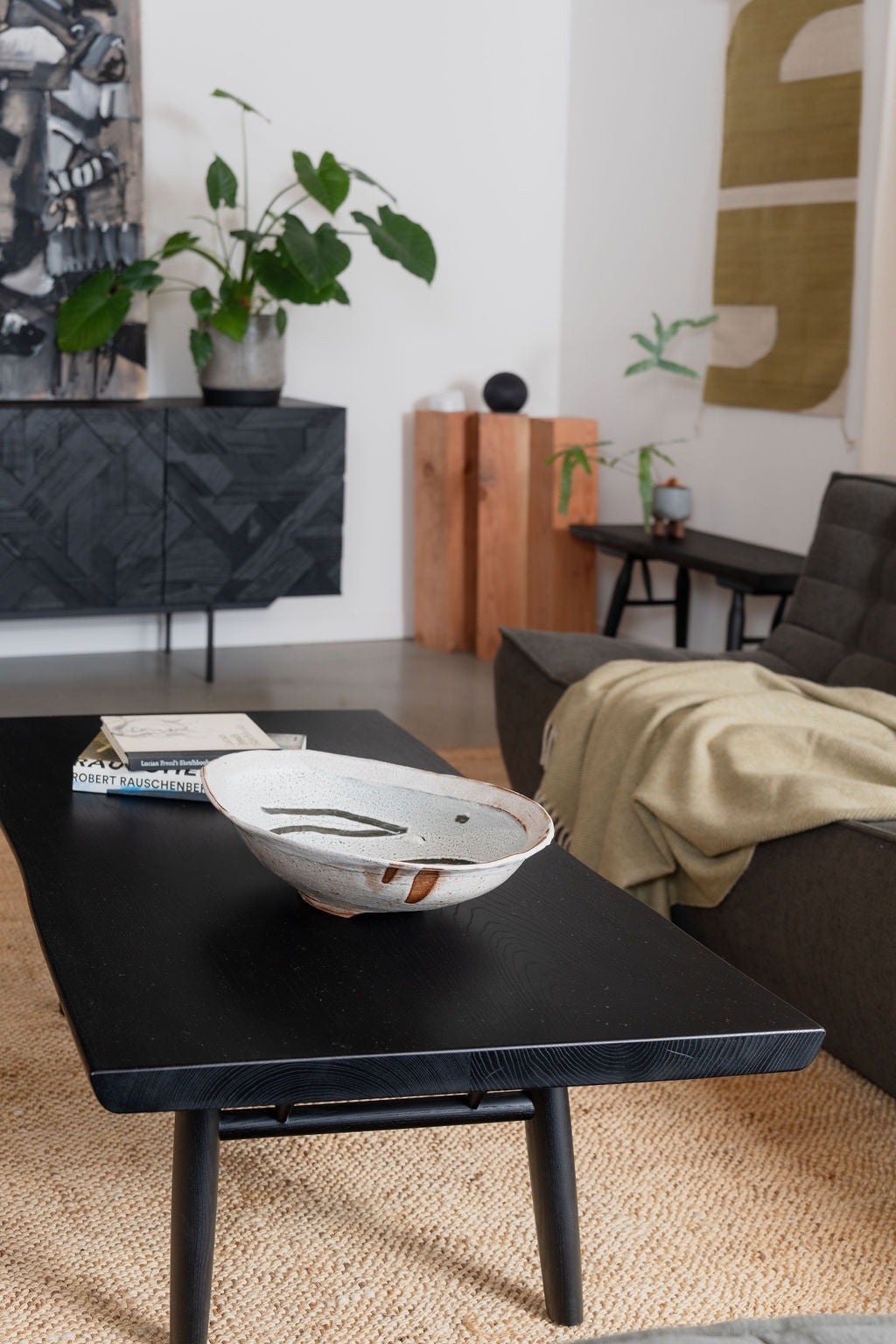 Organic lines and a minimal profile define our Mars collection of solid wood designs. American ash with a gorgeous live edge and a resilient black lacquer finish and turned legs. Natural wood characteristics such as distinctive grain, knots and checks are the defining features of this classic piece that will be with you for a lifetime. Designed and fabricated exclusively by SOBU. 1.75” thick slab. Each piece is one-of-a-kind.