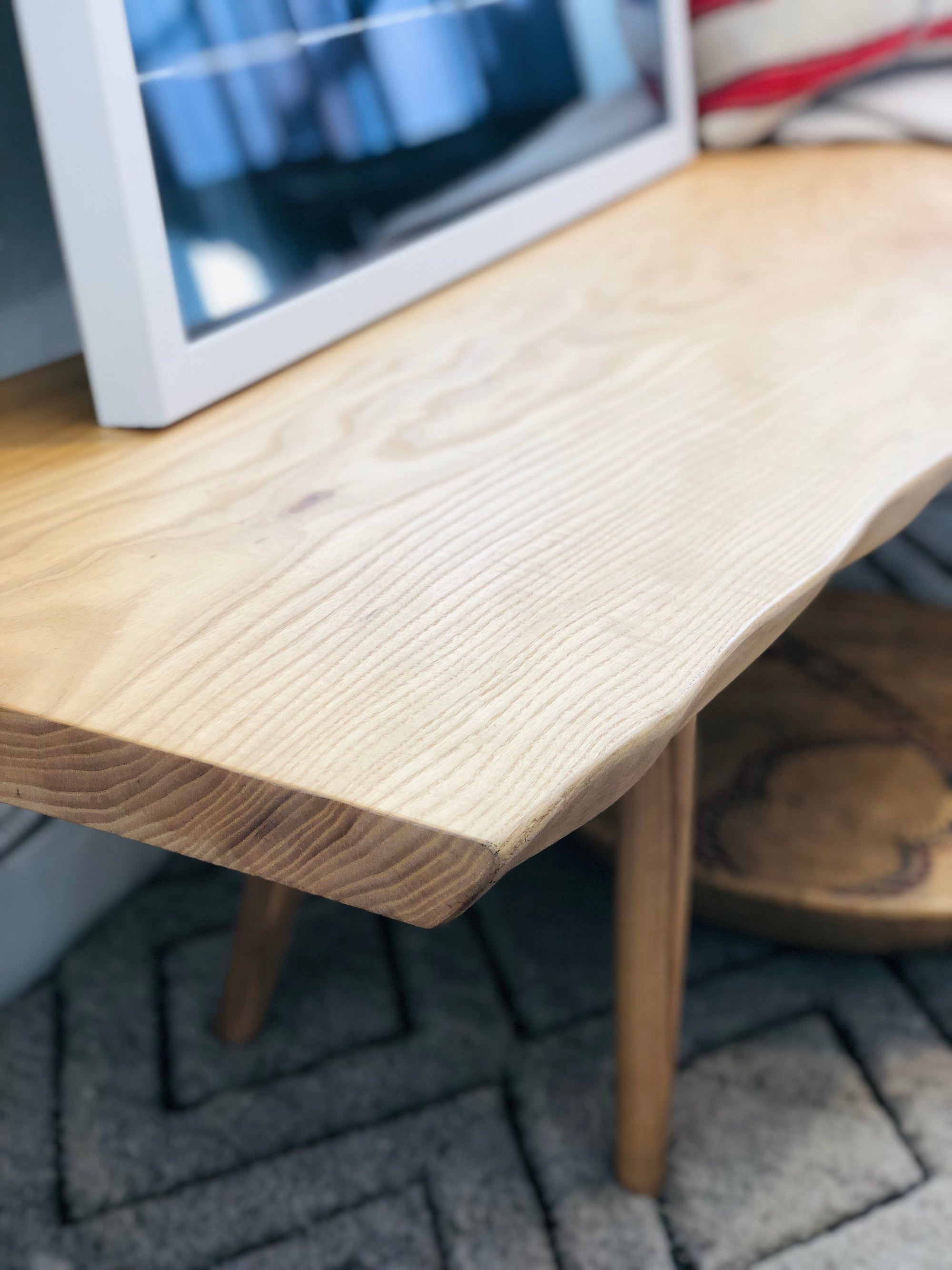 Organic lines and a minimal profile define our Mars collection of solid wood designs. American ash with a gorgeous live edge and a resilient hand-rubbed matte oil finish and turned legs.