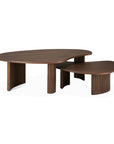 Pebble-shaped and organic silhouette with soft fluted legs. Available in two different sizes/heights (sold separately) which can be tucked into each other to create a larger coffee table combo.