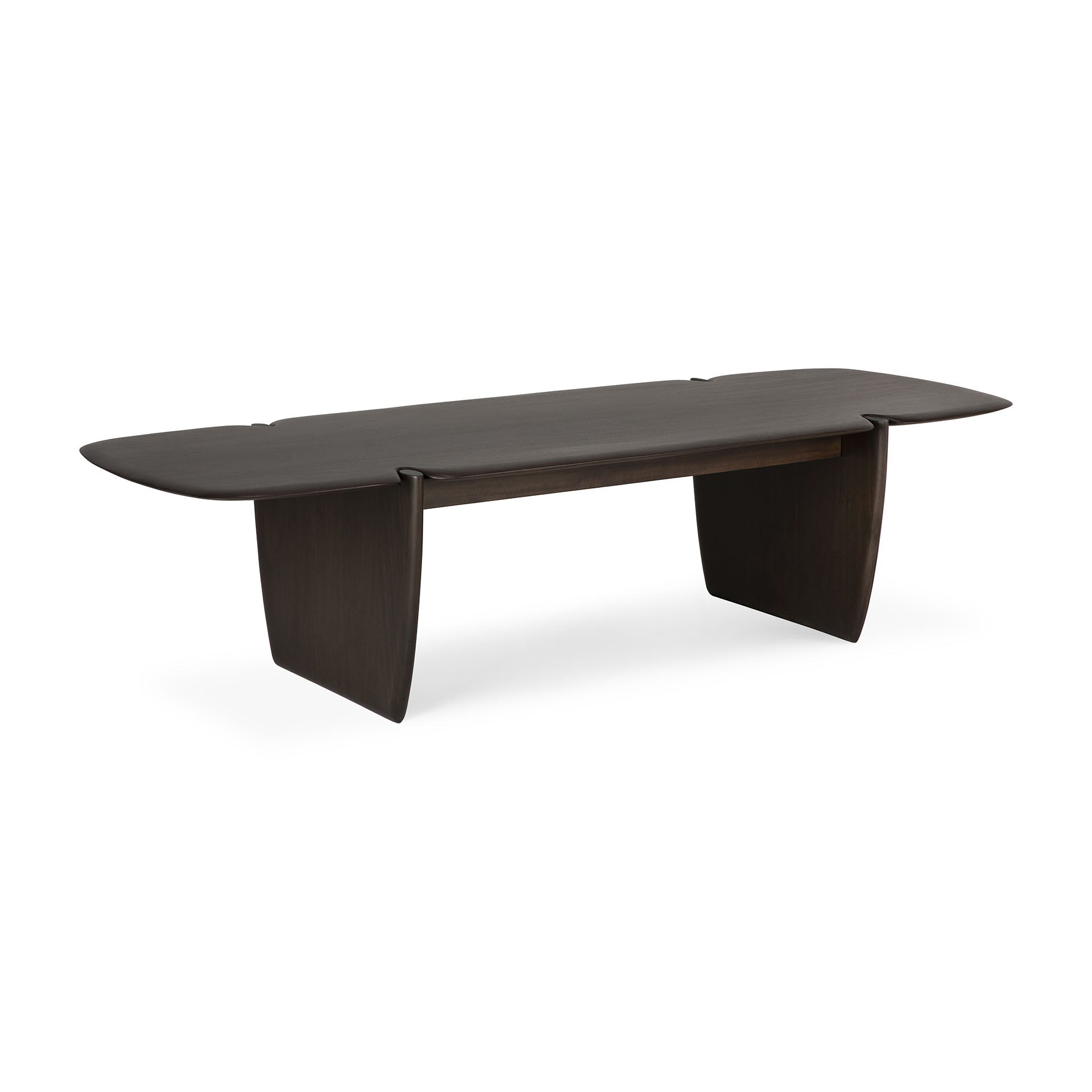 A dramatic curve-edged, low-slung table that can be used as a coffee table or as a bench. Place against a stark white wall for instant drama. Each piece is finished by hand to ensure that the individual character of the wood is highlighted.