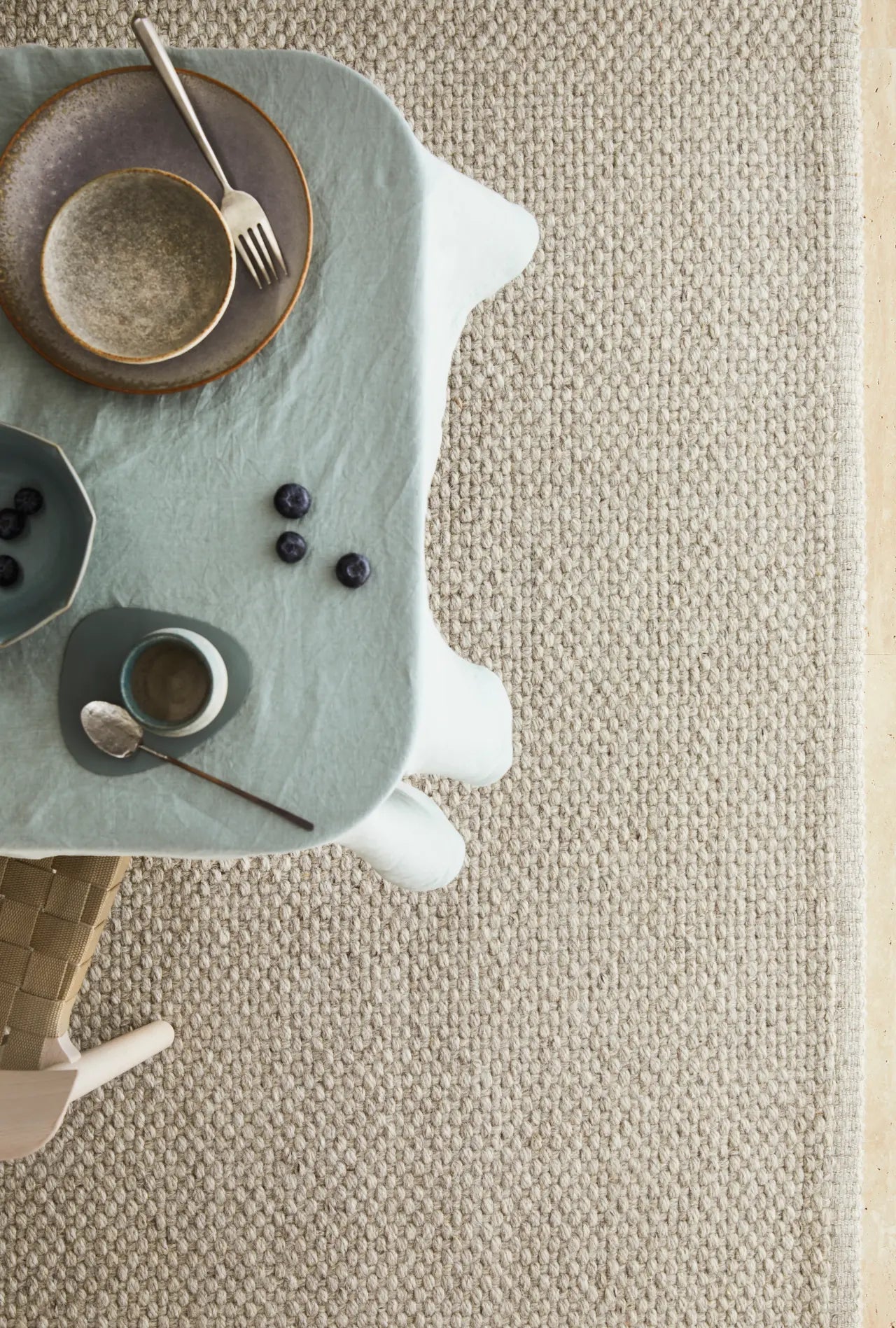 Bringing the earth's enduring presence to life, the Winnow rug anchors the room. A flat weave hatched with lusciously flecked wool, resulting in a hardwearing staple that eschews excess.