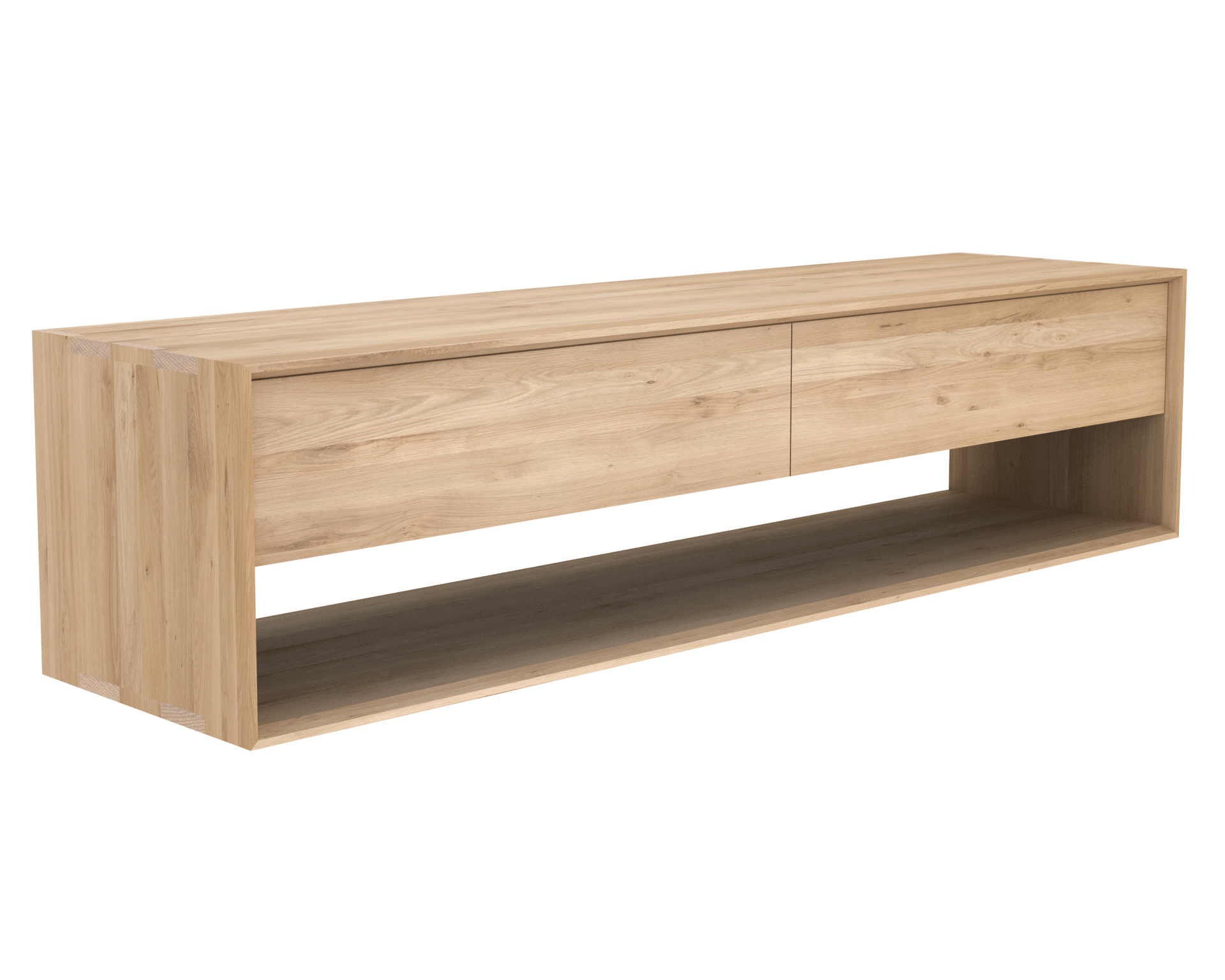 Solid European oak with an oiled finish. 1 flip-down door and 1 drawer.