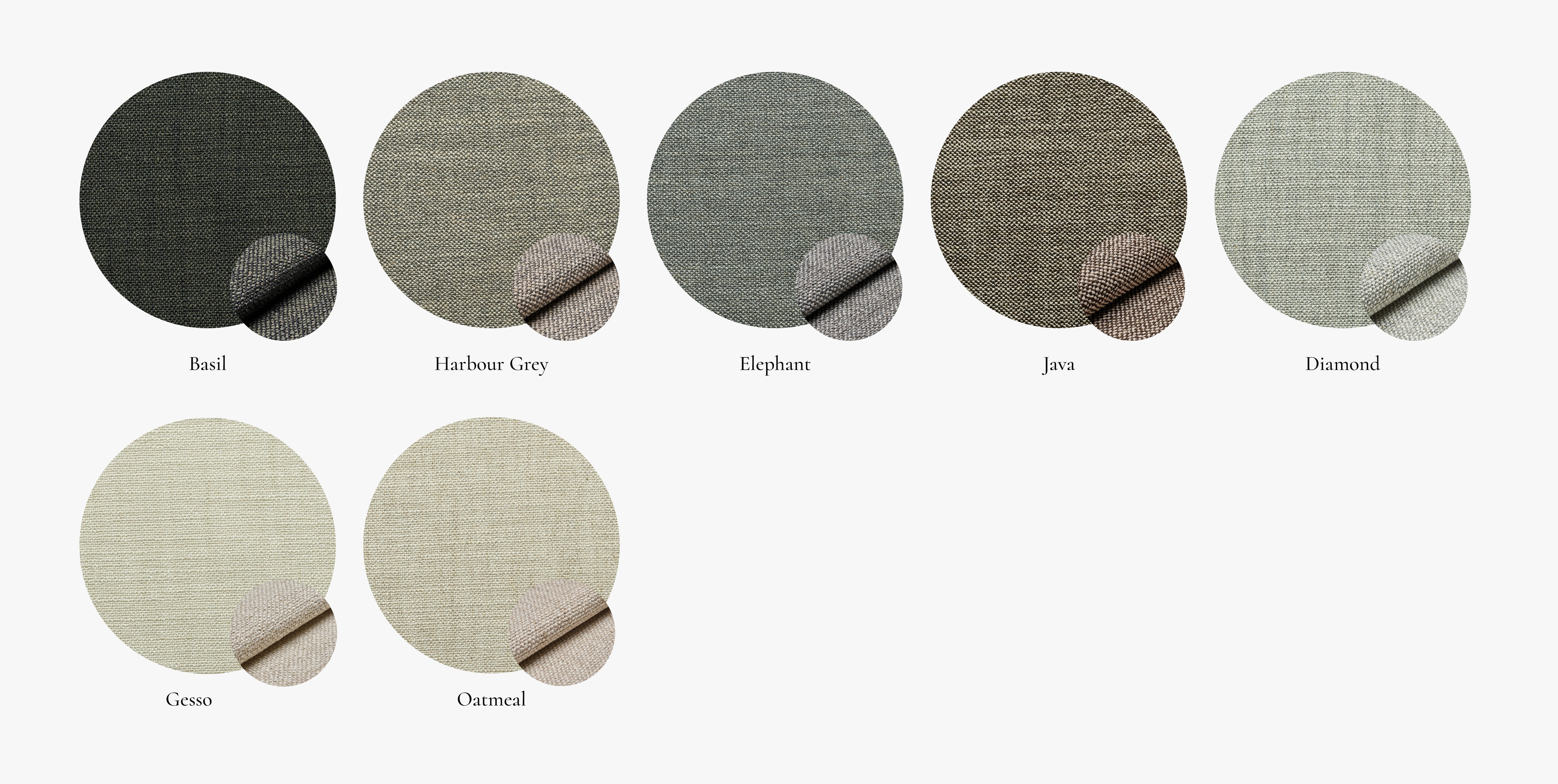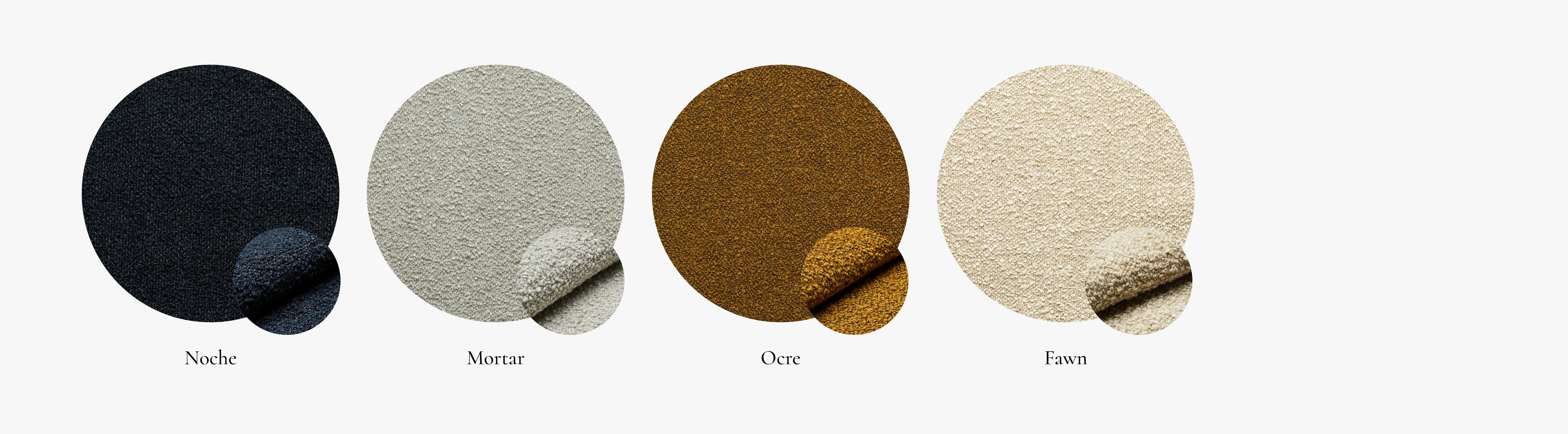 Please note: Digital swatches below are only a guide–colors can look different on every device. For made-to-order pieces, please request actual swatches to confirm your selection.