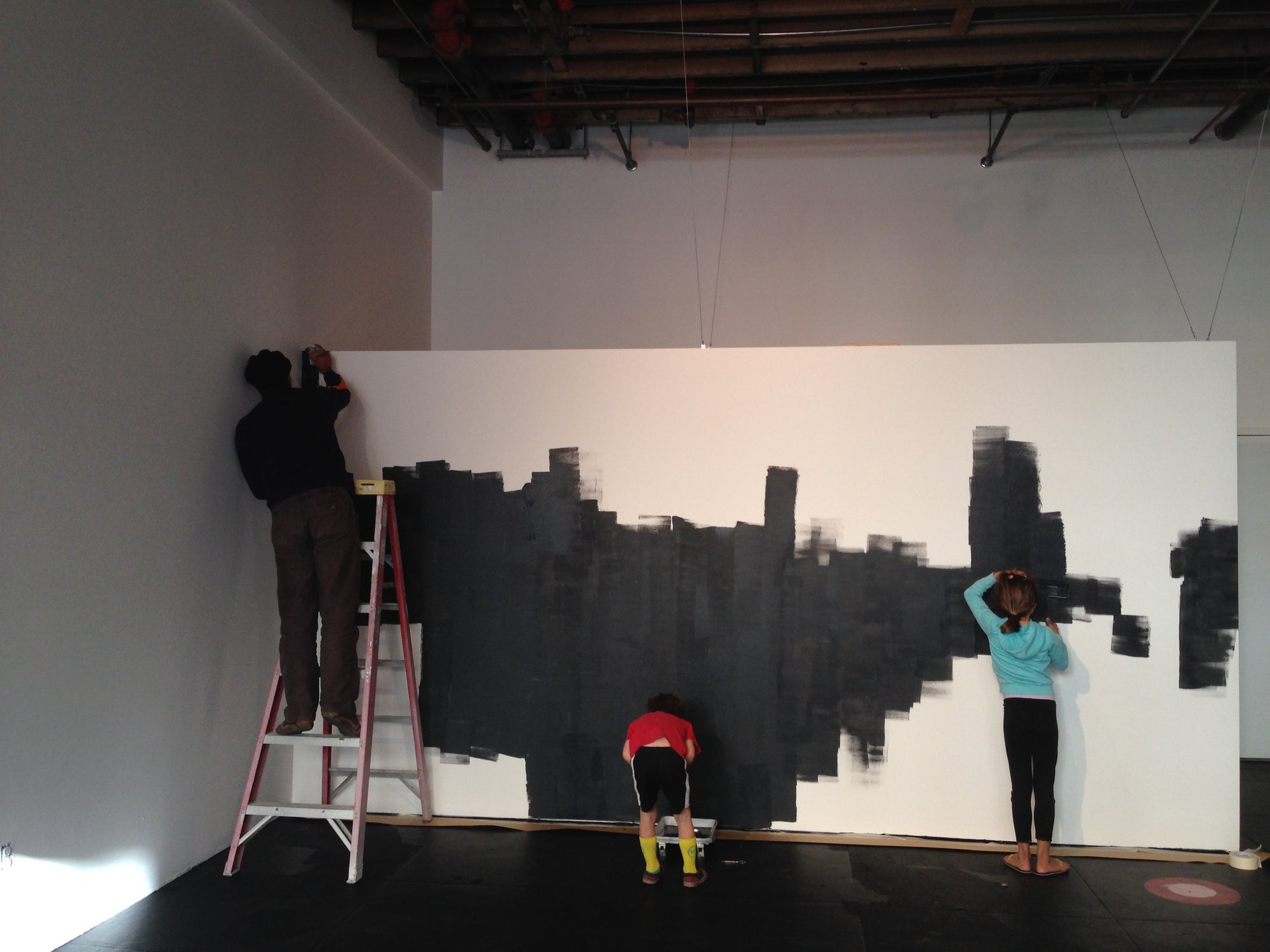 From left to right: Our kids, Sofia and Bruno, racing through our empty Old Oakland space before move-in in 2013, Alessandro and the kiddos painting the walls, the storefront, and the shop as it came to life inside.