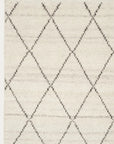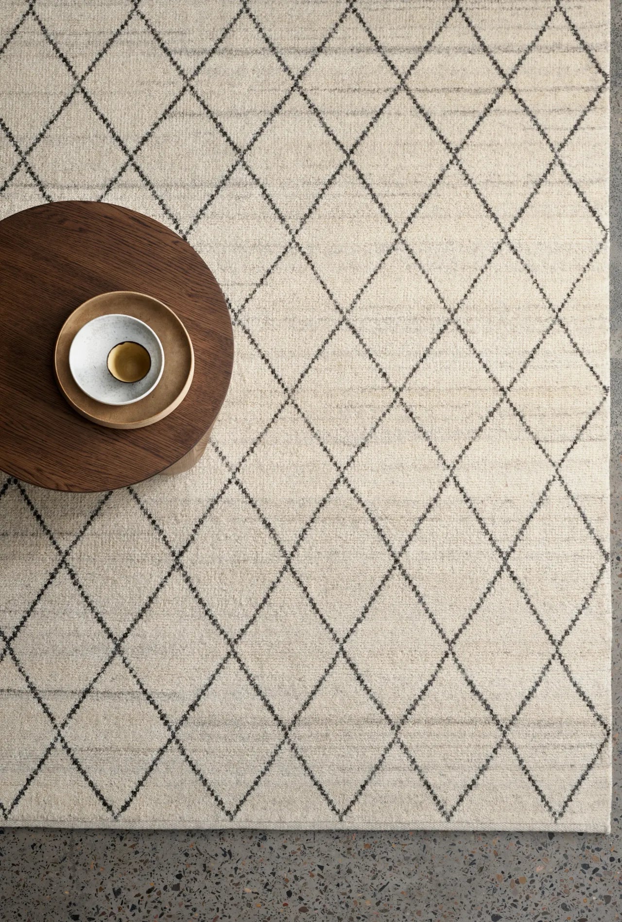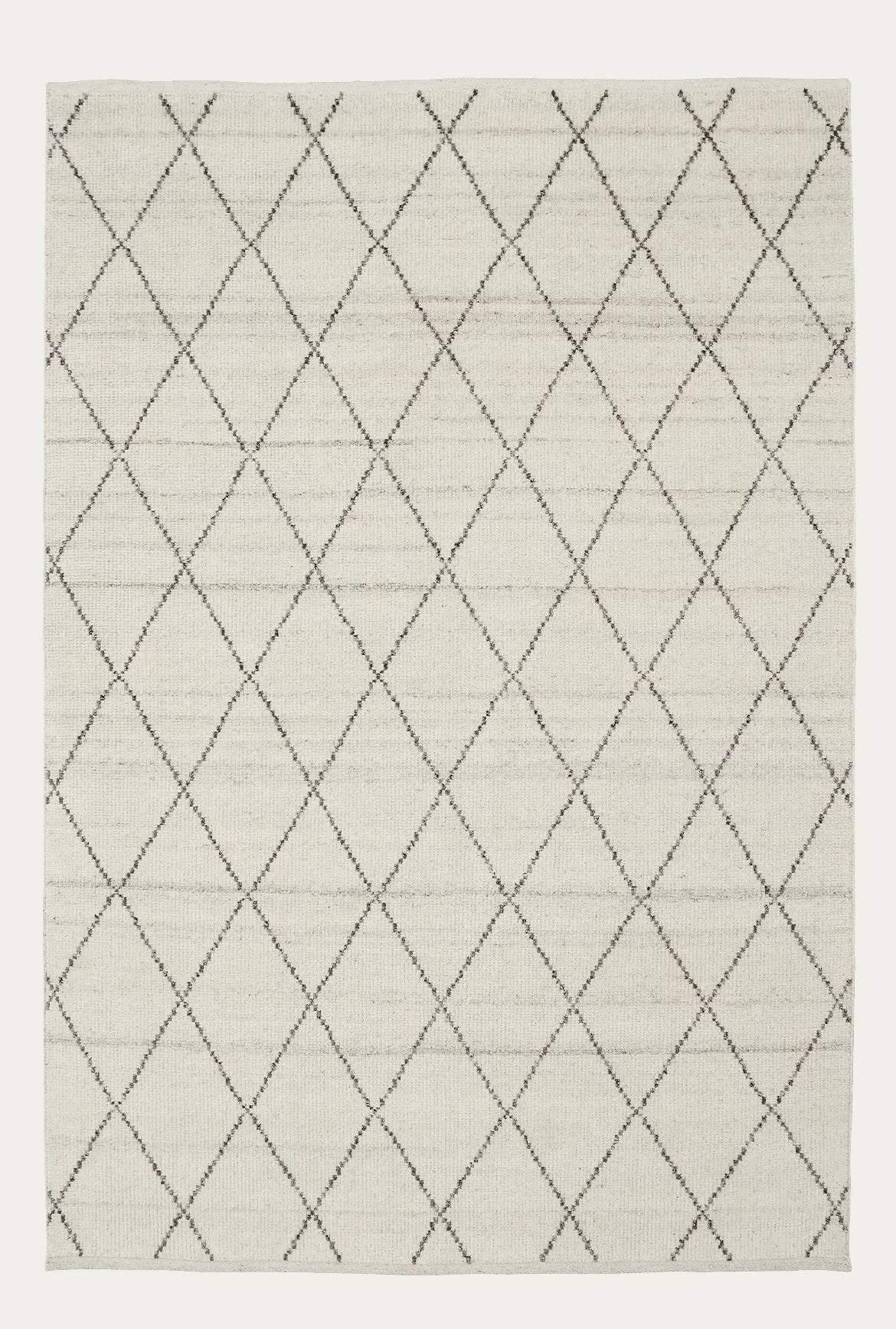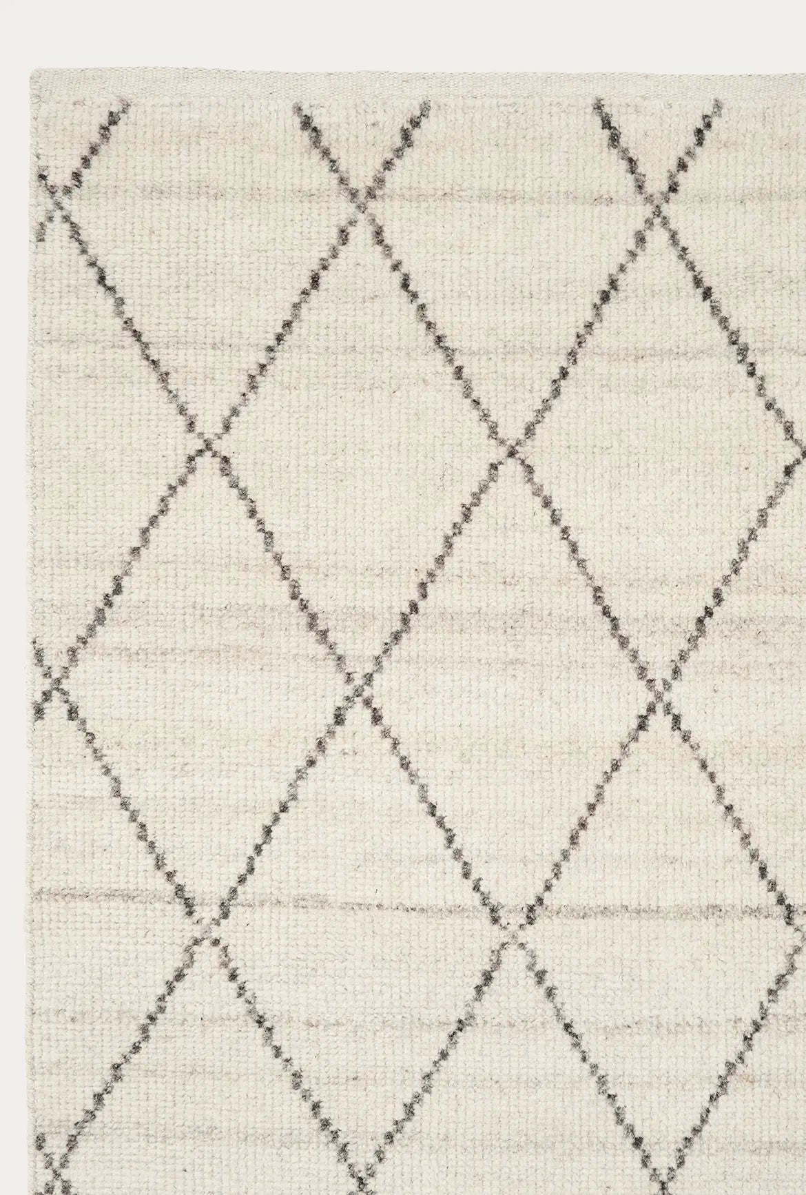 Taking its cue from traditional Moroccan Beni Ourain rugs, this simple diamond pattern is hand knotted into a low pile of soft, natural tones.