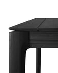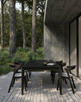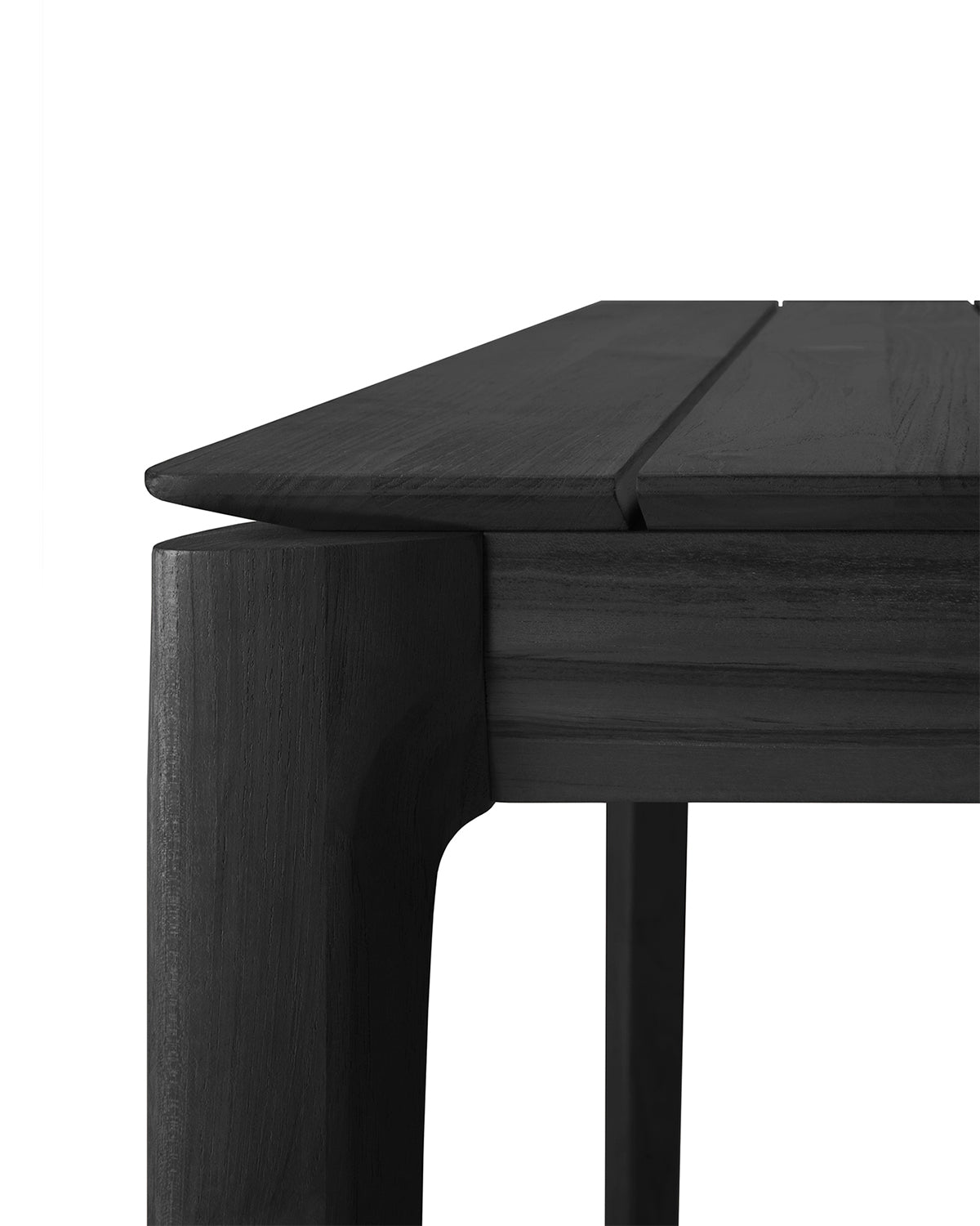 Designed and specifically constructed as an outdoor table that is meant to be used frequently and can take the great outdoors with stamina and grace for many years to come. Made of dense, solid, FSC certified, Grade A teak with a black varnish finish and an open slatted surface to allow for rain to easily run off.