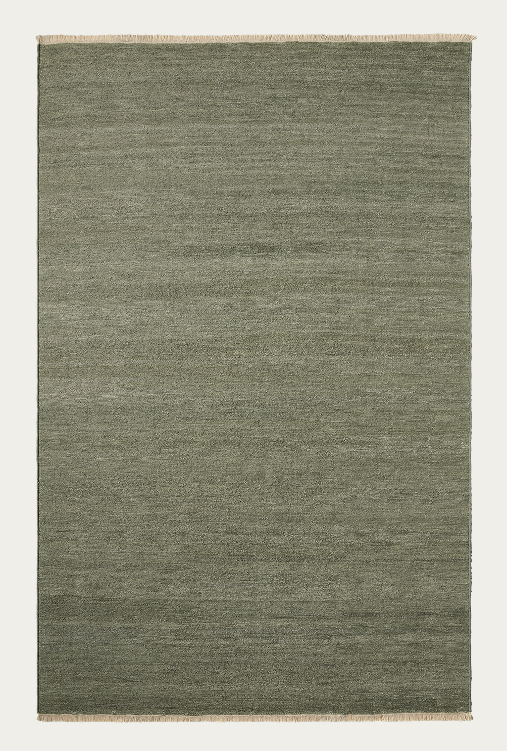 The Armadillo&Co Cable Rug - Jade is a rectangular, solid sage green wool rug with subtle texture and short beige fringe on the shorter edges, shown on a white background.