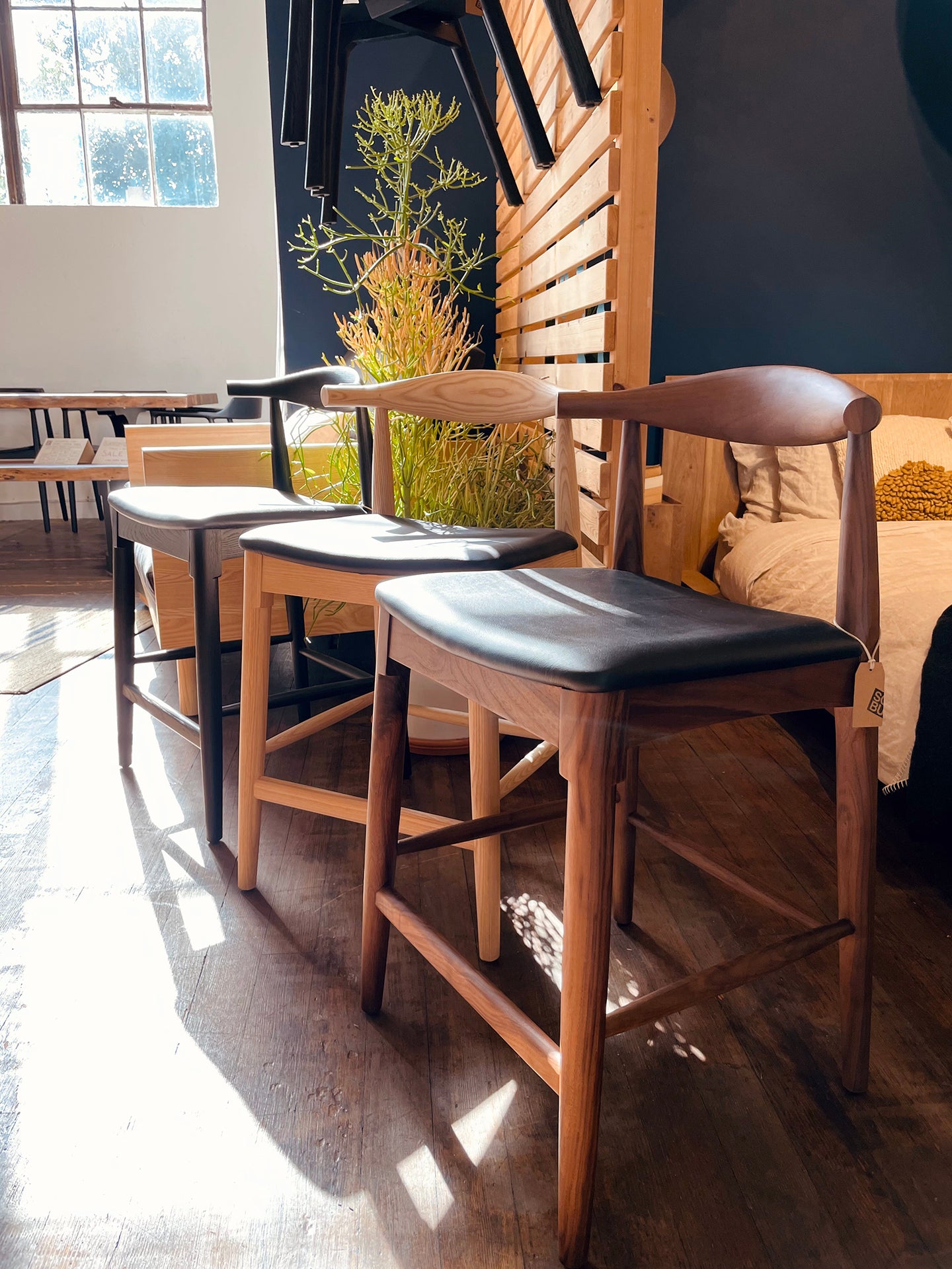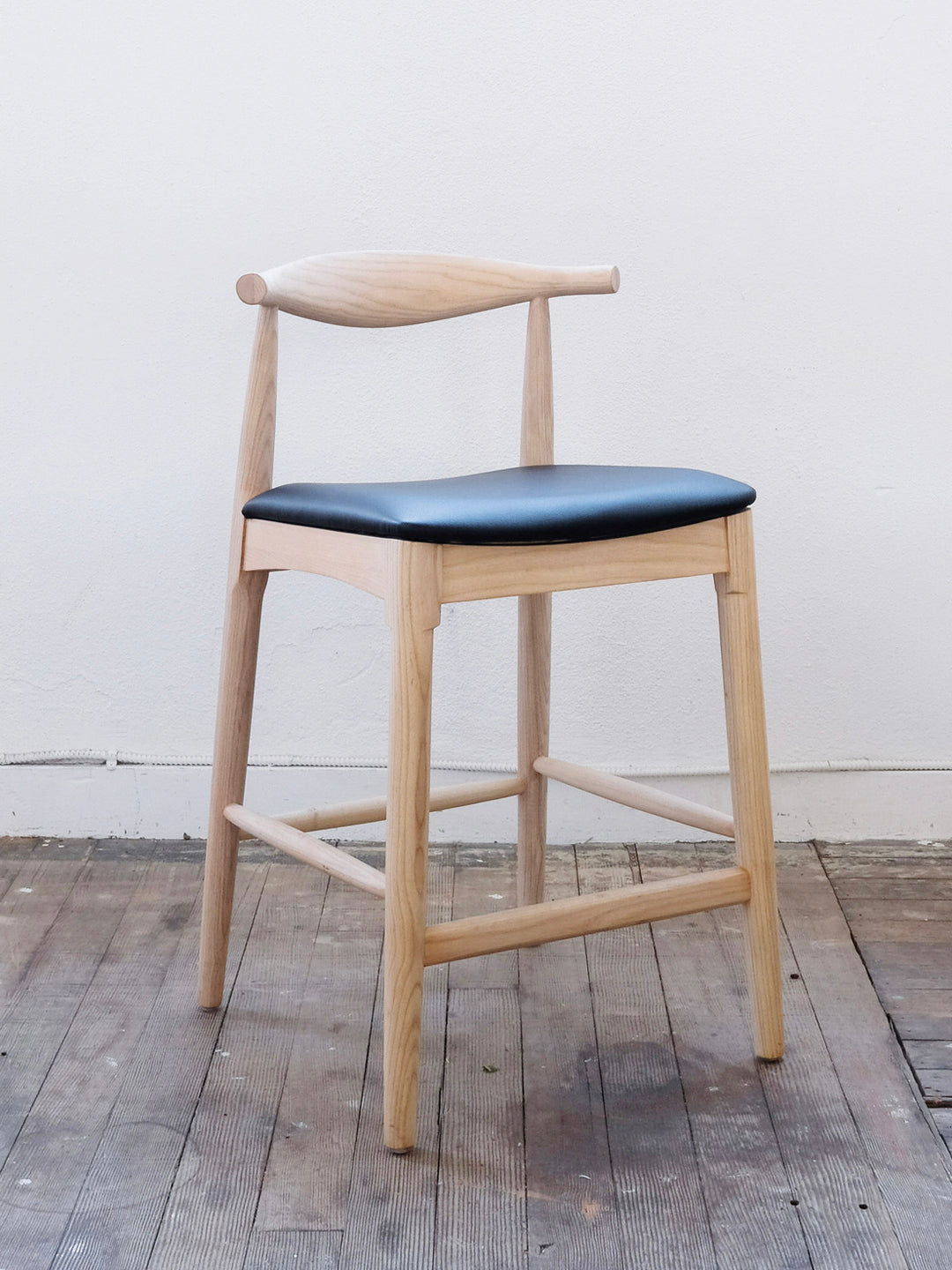 Solid American ash with a durable matte finish and soft, top-grain black leather padded seat.