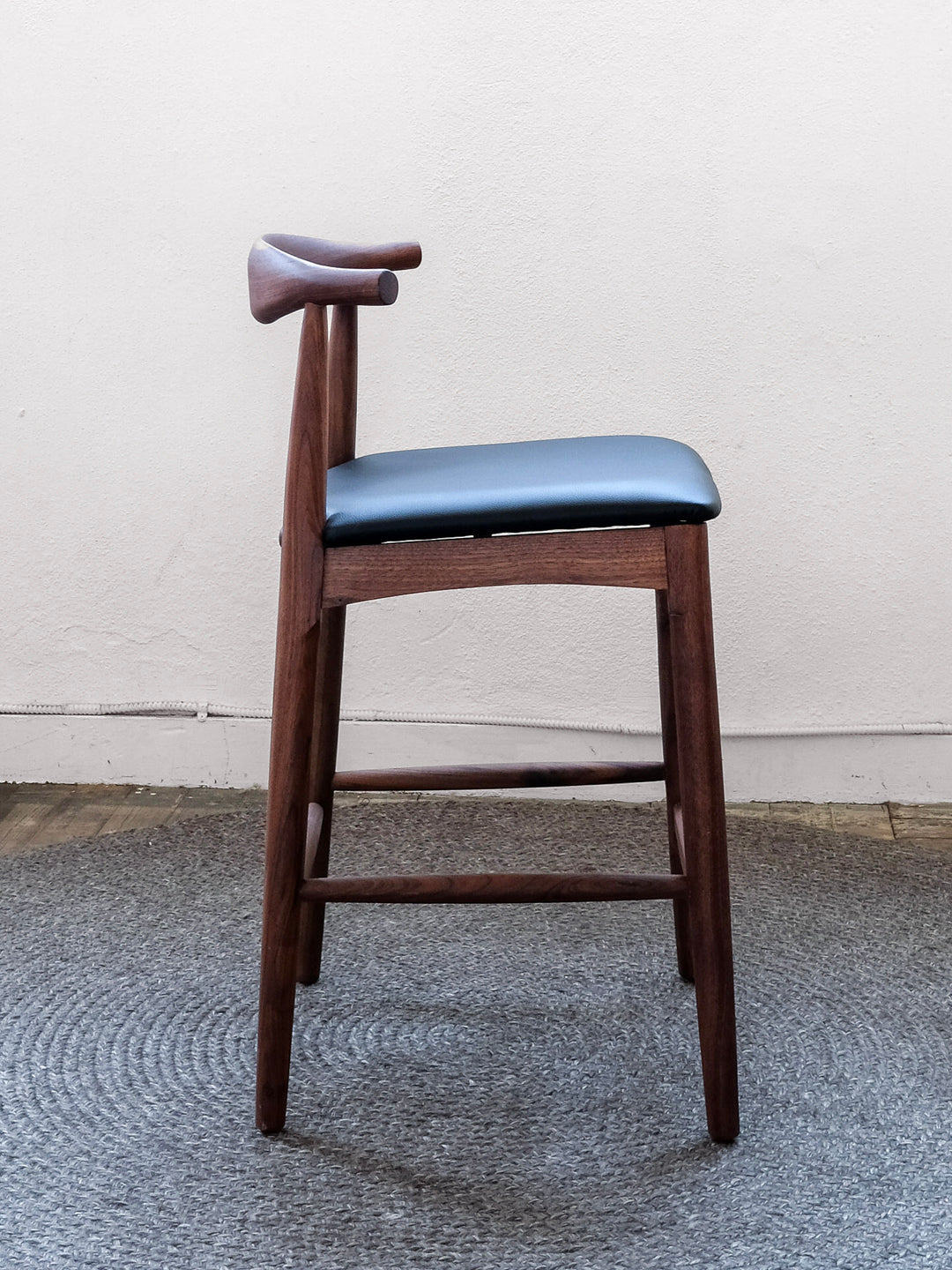 Solid American walnut with a durable matte finish and soft, top-grain black leather padded seat.