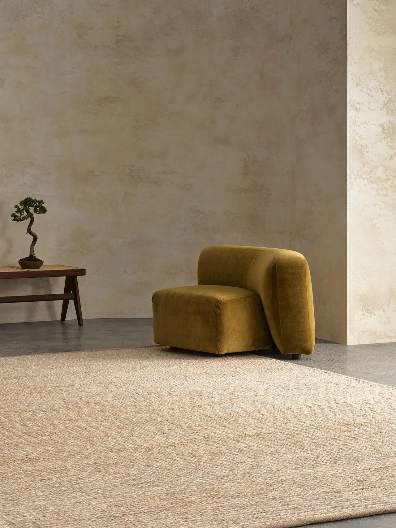 Handwoven from thick, sturdy jute set against undulating lines of luxurious wool, our Kalahari rug balances generous doses of differing texture to evoke the shimmering heat of the African desert.