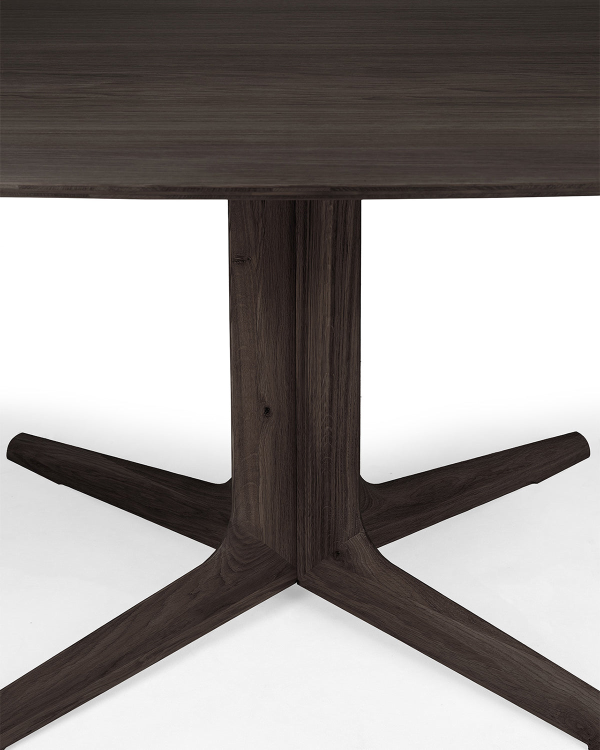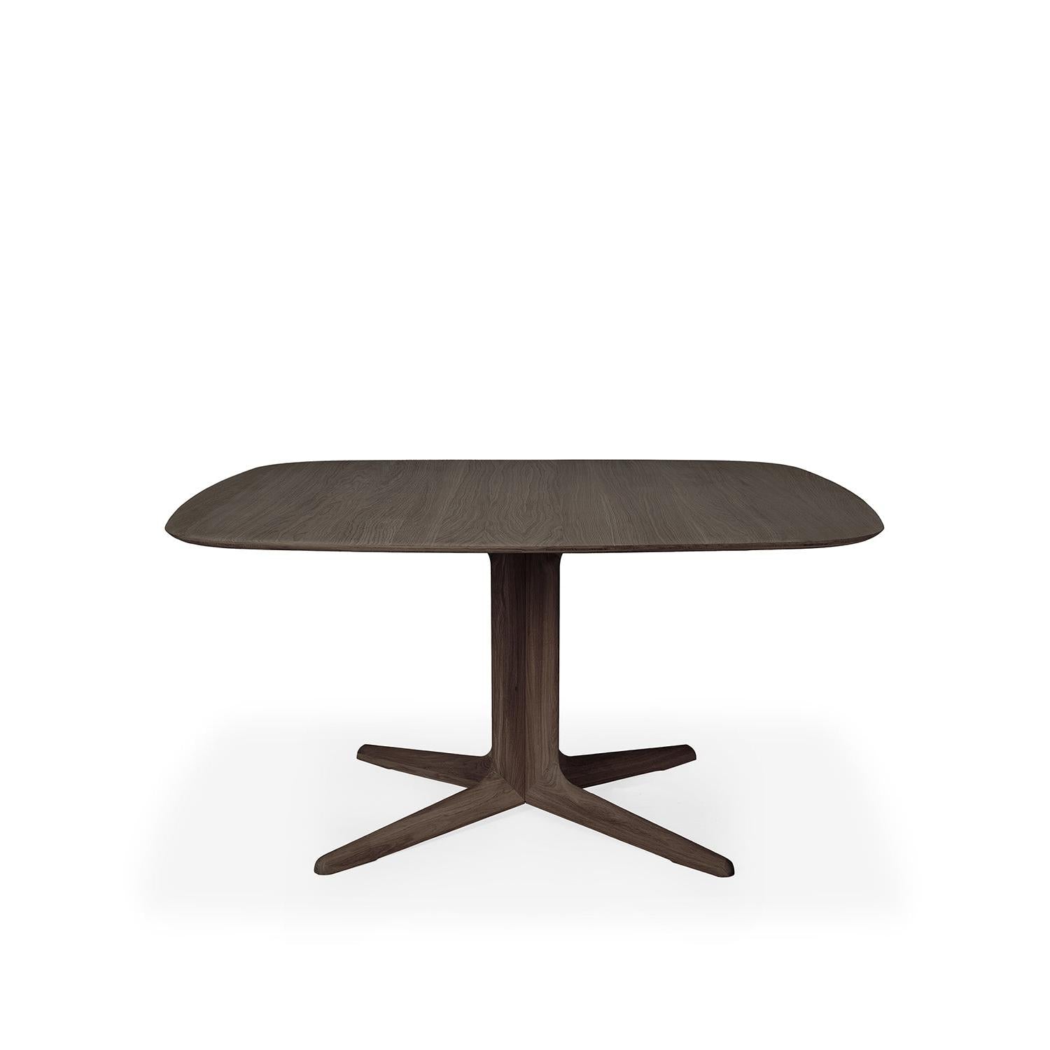 Inspired by the vaults within grand architectural designs, the Corto's central-footed base provides both visual interest and practical stability with less leg disturbance for your guests. The solid oak brown tabletop is crafted into the perfect shape, with unique rounded corners to create welcoming and comfortable social or professional gatherings.