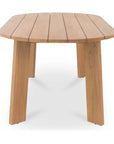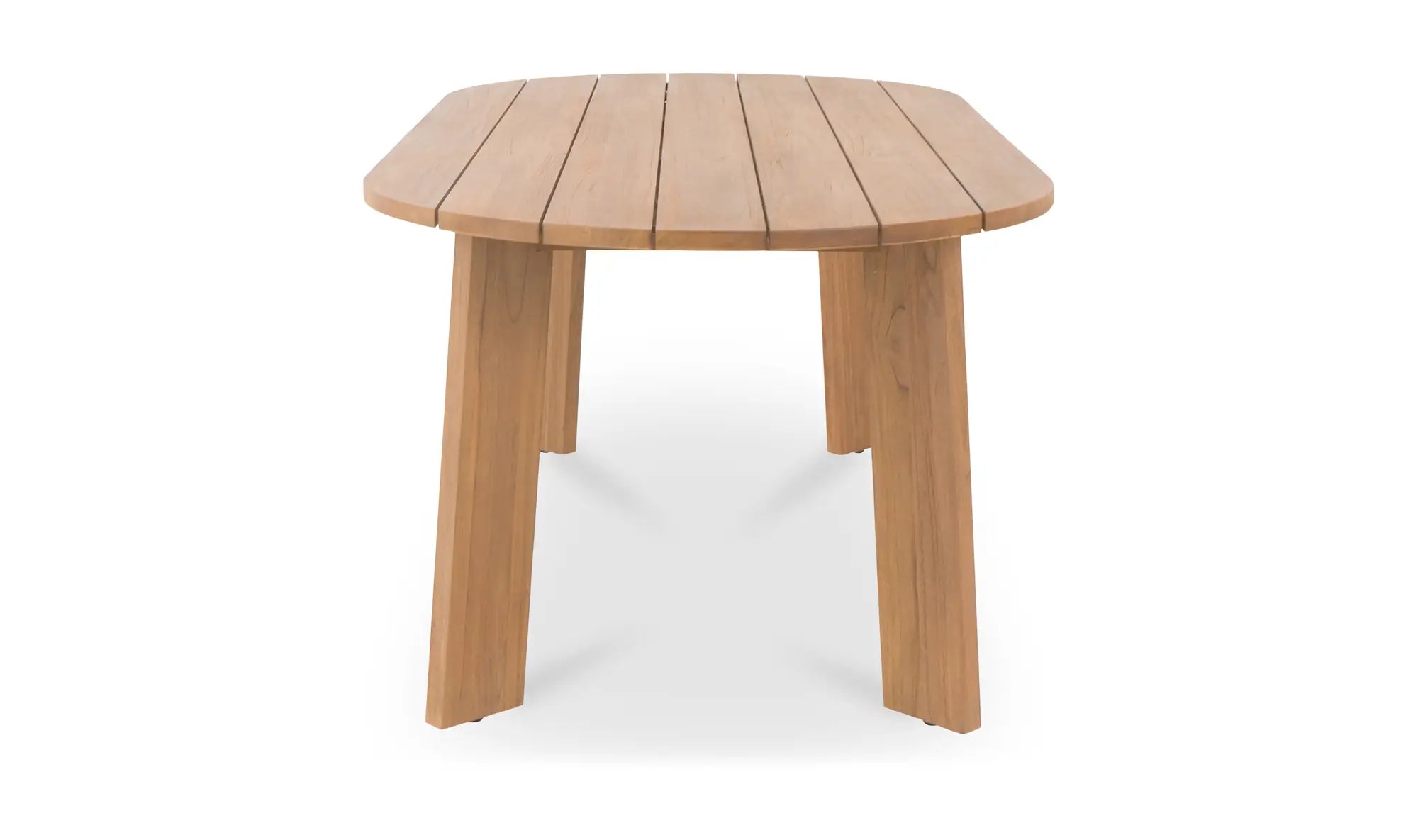 The Delta Outdoor Dining Table - Oval by Moes features a solid teak build with an oval top and four rectangular legs, offering minimalist elegance for outdoor dining.