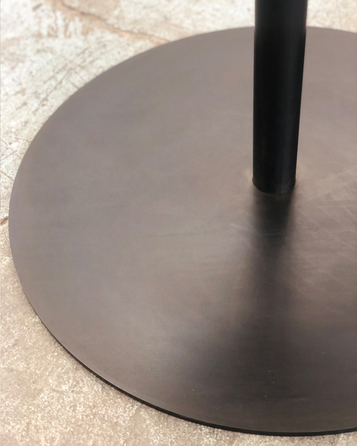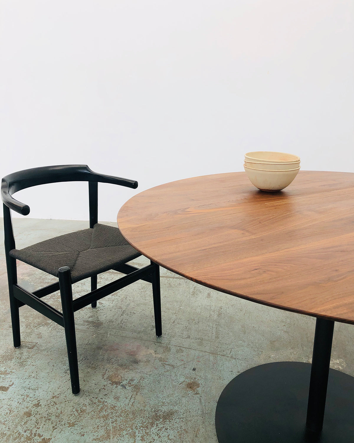 A classic profile that is visually light yet strong. Solid Eastern black walnut with a beveled edge and resilient matte Osmo oil finish. 1.5" top and 3/8" steel base with hand-waxed patina finish.
