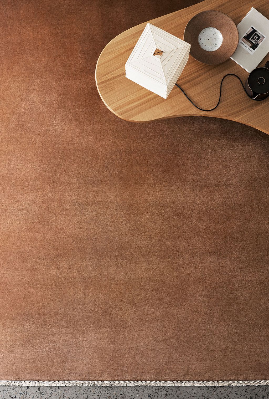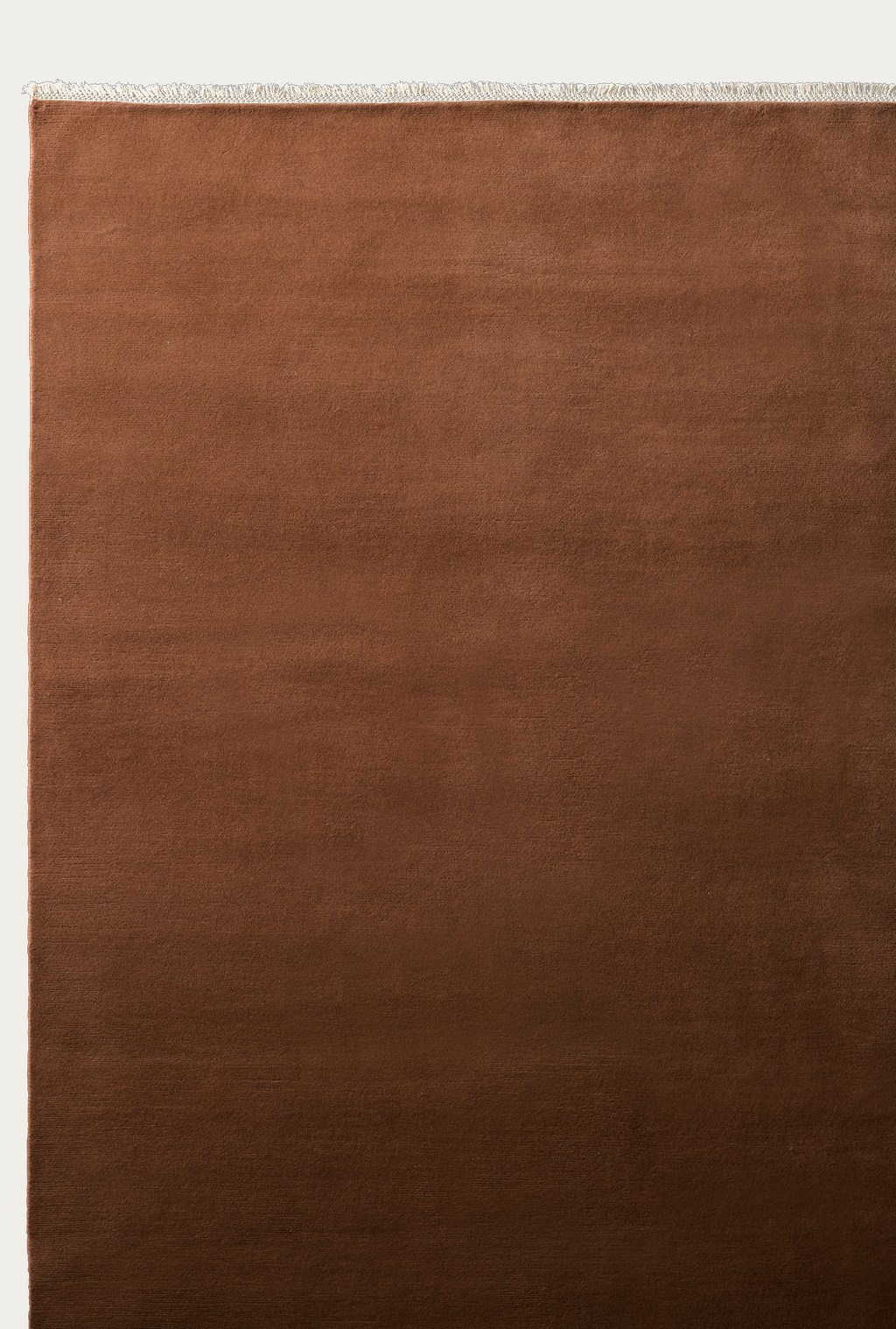 The Eden Rug - Granada by Armadillo&Co is a large rectangular area rug, hand-dyed in brown wool with a smooth velvety texture set against a light background.