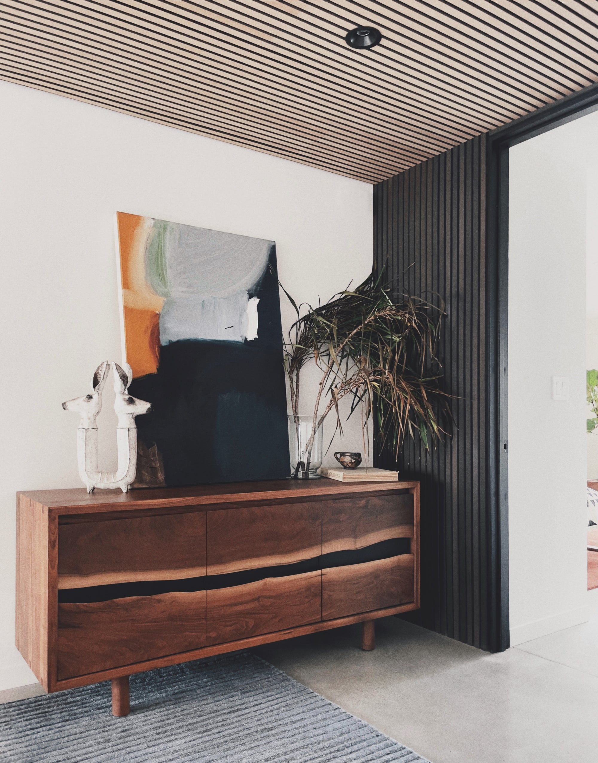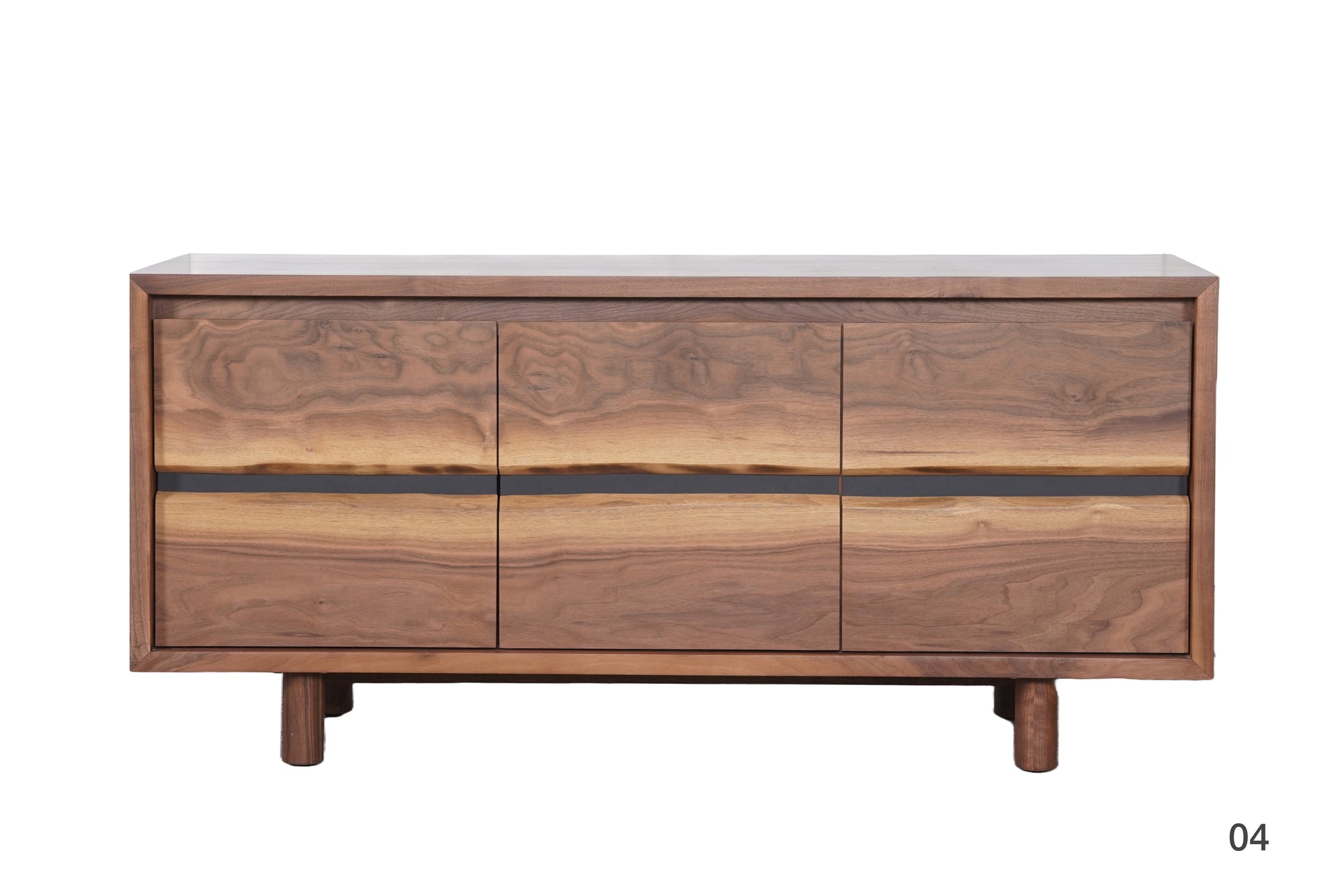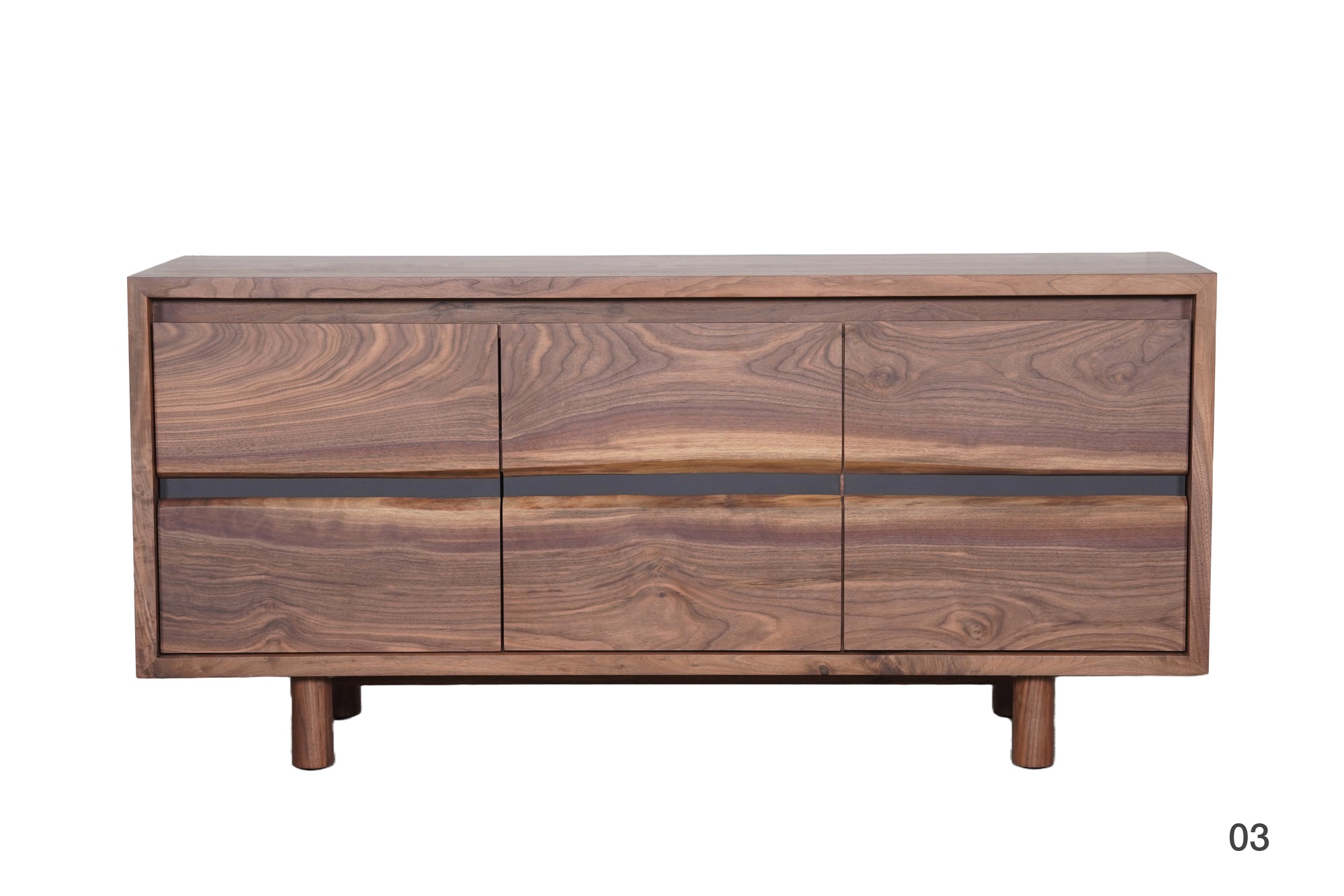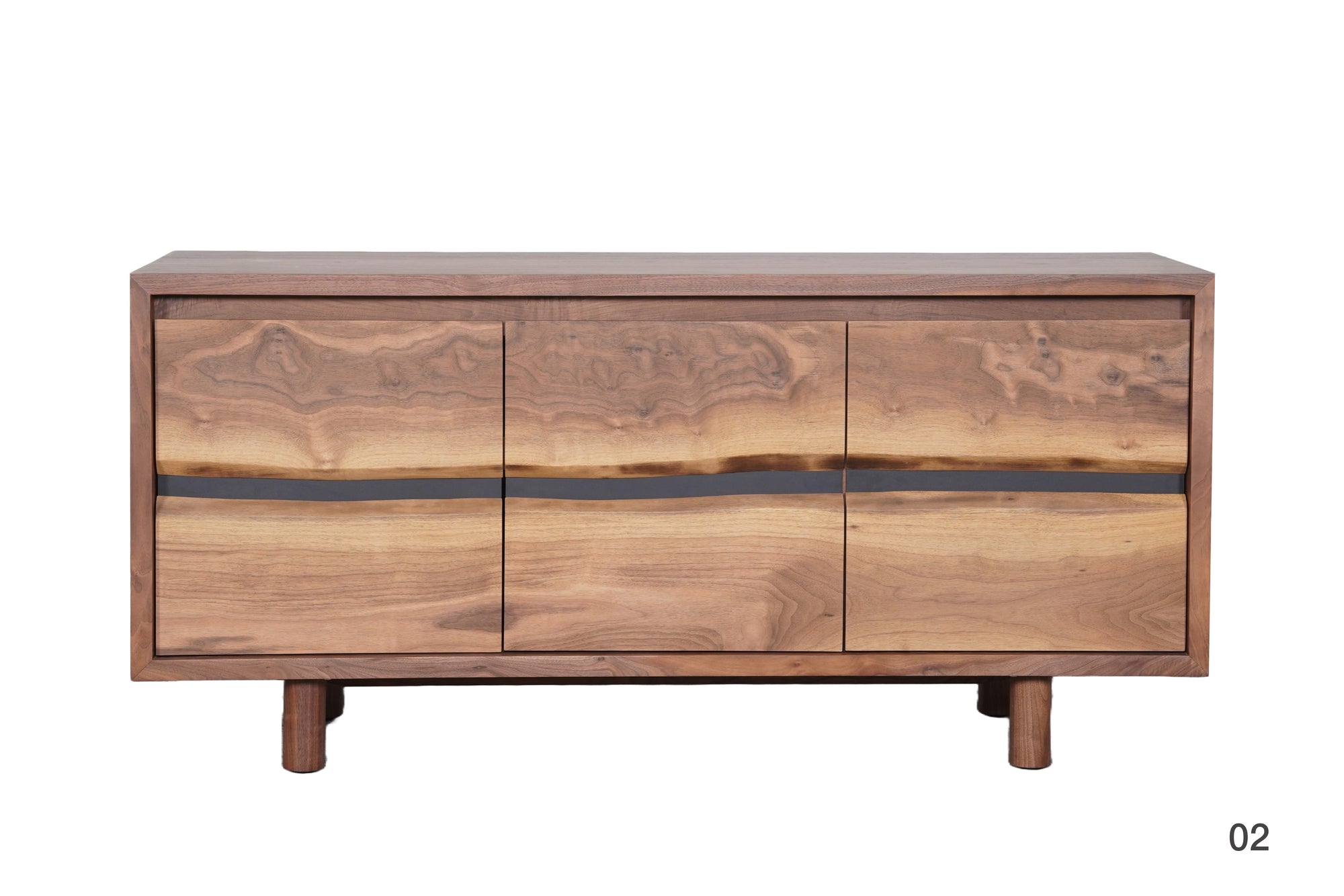 Solid American walnut with live edge facade. Soft-close doors and adjustable shelves. Hand-rubbed matte oil finish. Each piece is one-of-a-kind.