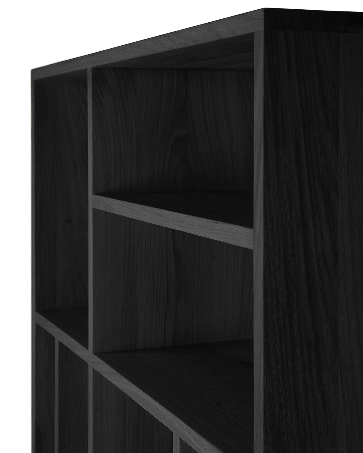 Solid European oak with a black varnished finish for extra protection. Contract grade and suitable for high traffic use.