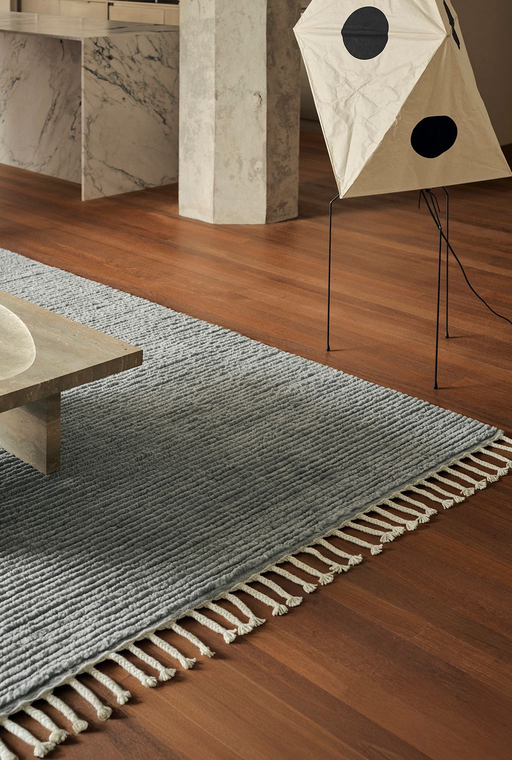 Malawi evokes novelty and nostalgia with rows of hand-knotted wool framed by a tasseled fringe. The ribbed pile, now an undulating canvas for painterly hues, has an artisanal feel designed to bloom and blend with time. Delightfully soft and supple, this beloved style oozes barefoot comfort.