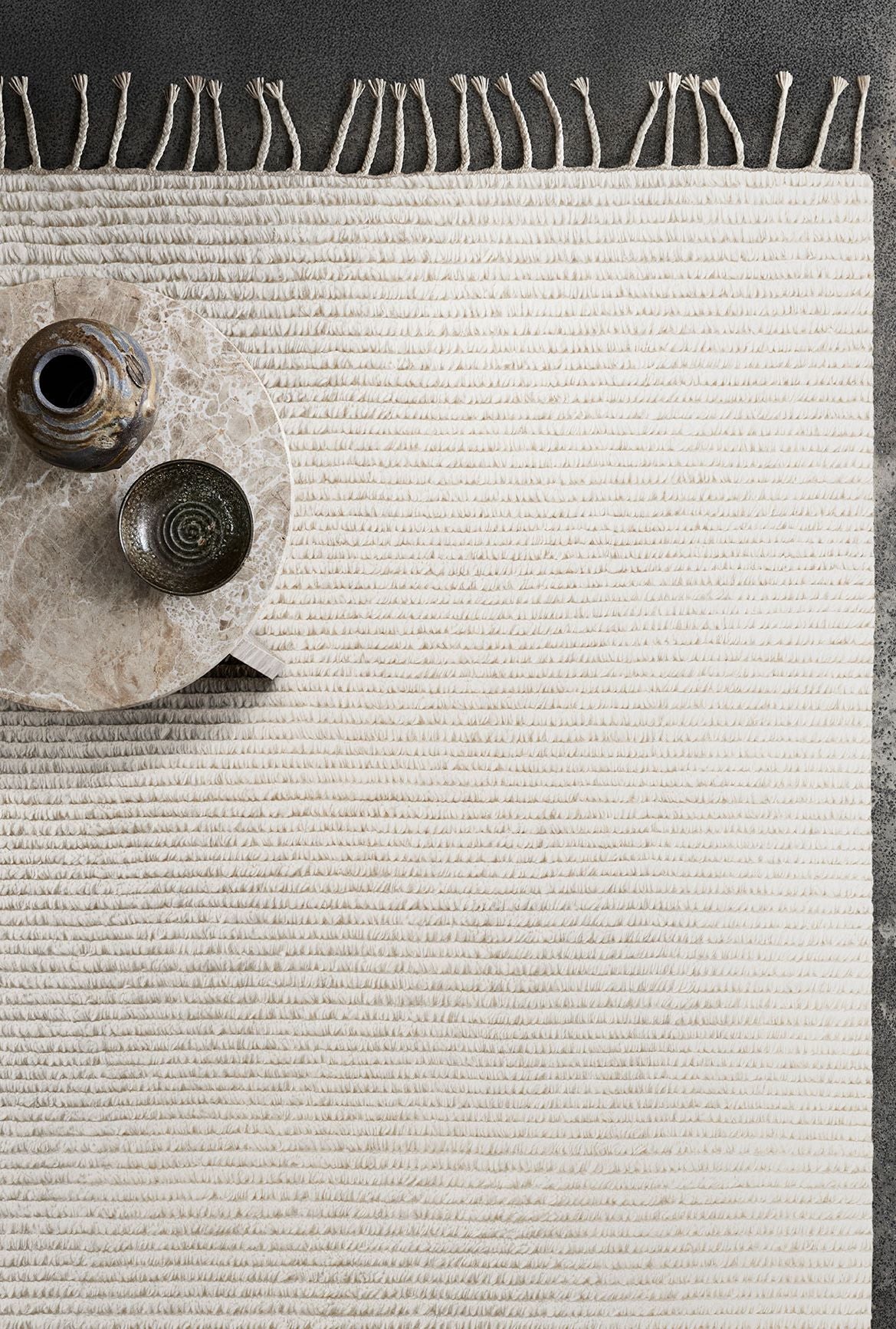 Malawi evokes novelty and nostalgia with rows of hand-knotted wool framed by a tasseled fringe. The ribbed pile, now an undulating canvas for painterly hues, has an artisanal feel designed to bloom and blend with time. Delightfully soft and supple, this beloved style oozes barefoot comfort.
