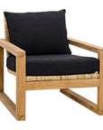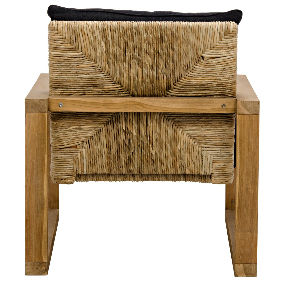 Constructed with a solid teak frame and a durable woven rush seat, the Martin Chair is stylish and sturdy. With its black cotton cushions, this lounge chair offers comfort and easy maintenance - thanks to the zip-off feature that makes cleaning a breeze.