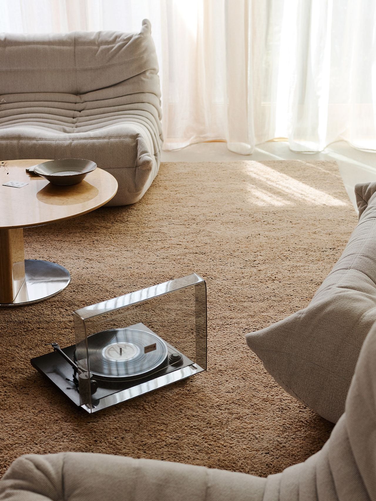 Meadow features a checkerboard weave that nods to heritage tweed. Crafted from luscious wool that is carded, spun and knotted by hand, this 70s-inspired rug has a rich character that transforms the home into a relaxing retreat.