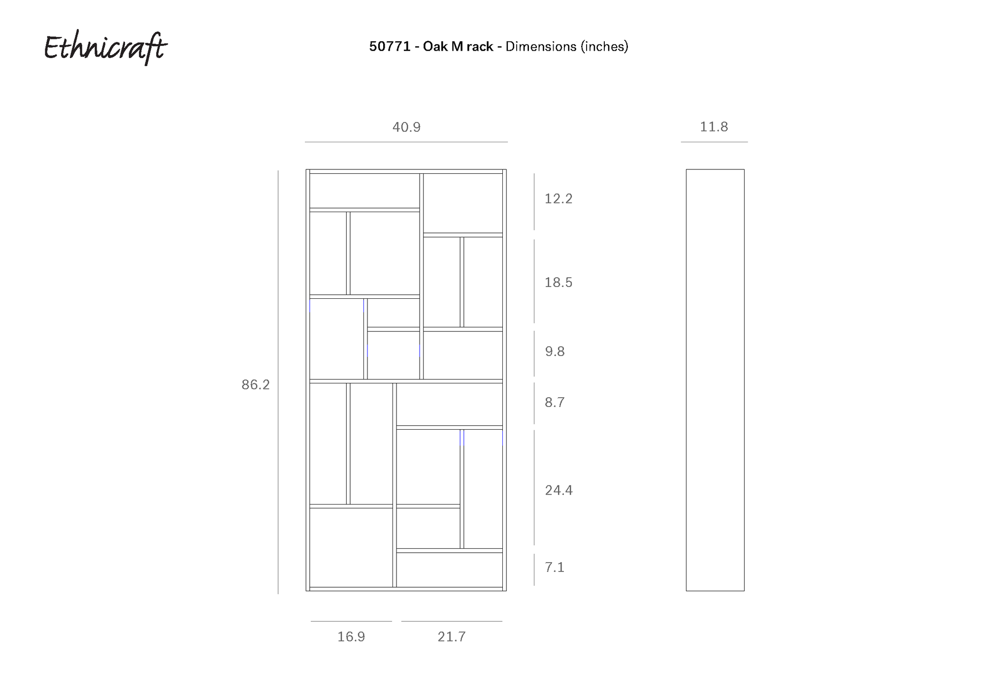 41 w x 12 d x 86" h.