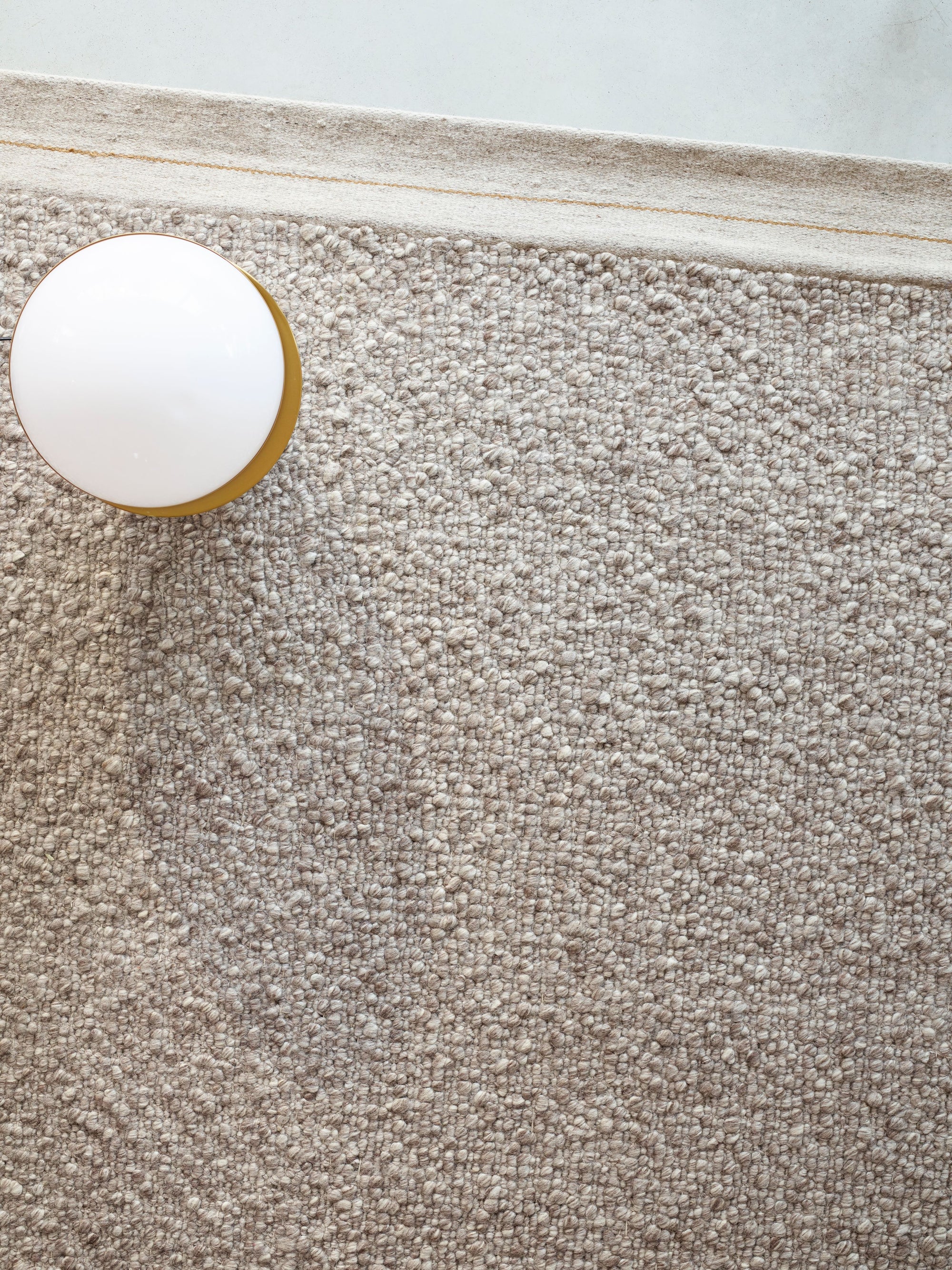 Palus has an exaggerated weave of marled wool that is felted then twisted at varying weights for rich texture underfoot, like the gravelly terrain of a mountain. Solid and substantial yet cloud-soft, the rug has a thin accent thread running through its generous turnover.