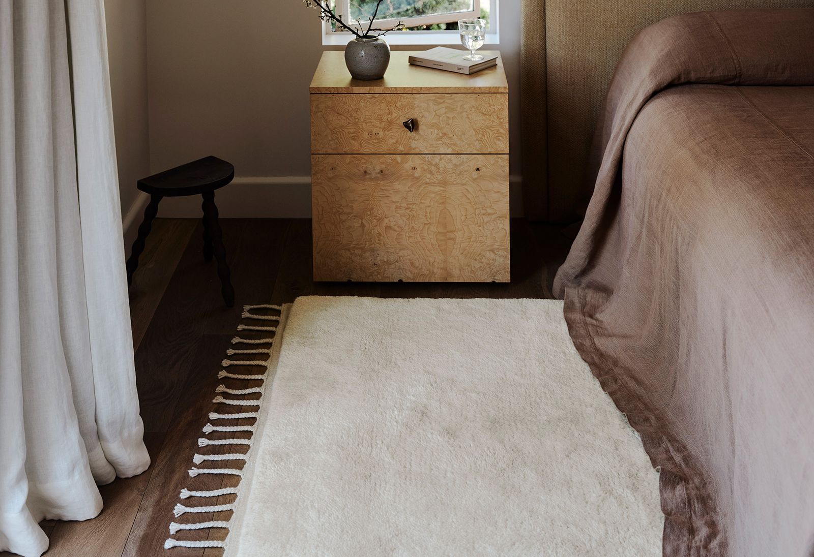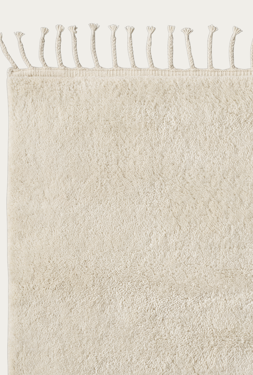 Framing the home for the practice of gentle rituals, this modern take on the traditional Berber-style rug oozes effortless luxury. Hand-knotted from New Zealand wool into a lush pile bookended by plaited tassels, the cloud-like surface has a meditative effect underfoot.