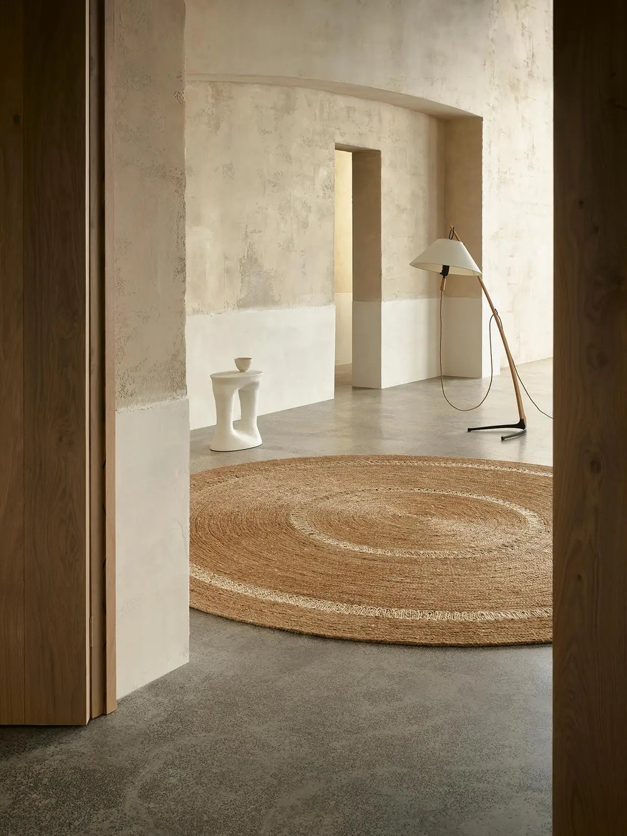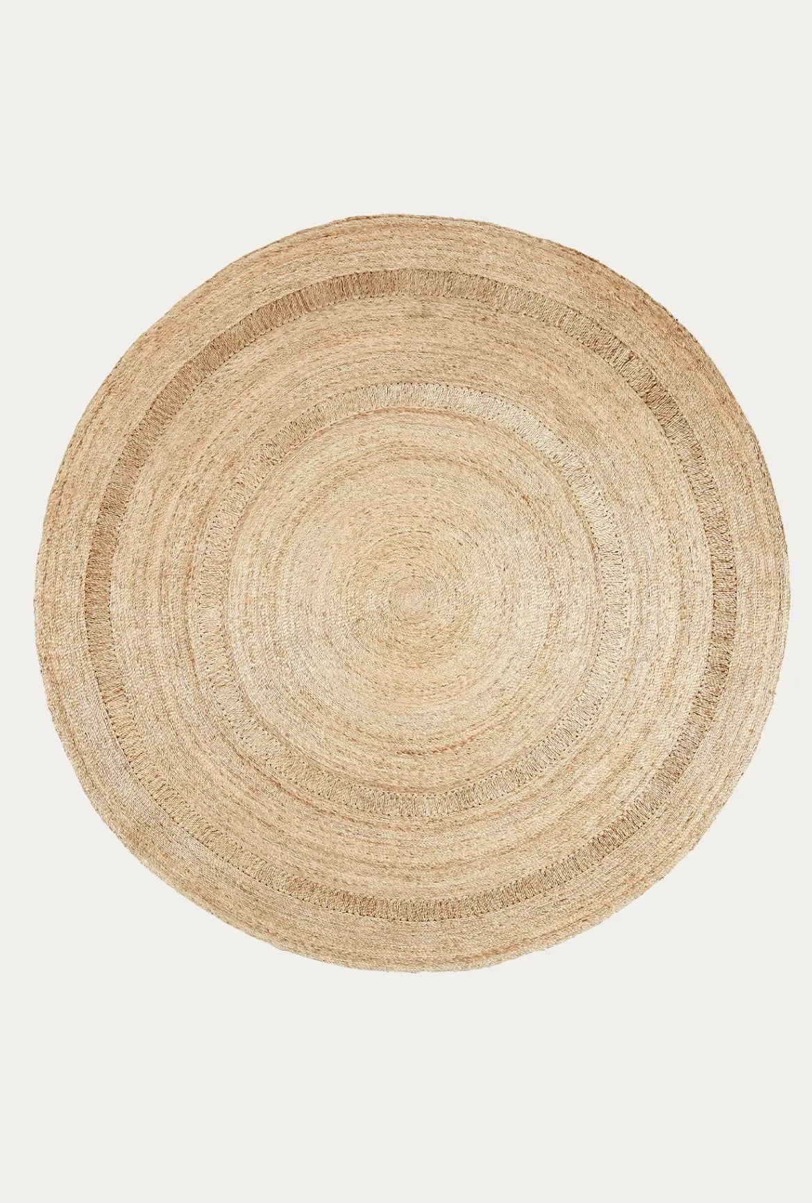 6' or 9' diameter. 100% Jute. Hand braided, coiled and stitched. Handmade under Fair Trade standards by artisans in India.