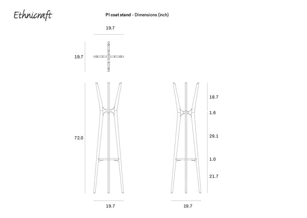 The PI collection honors nature’s design by keeping the strength, curves and lines, as nature intended. Interesting shapes are discovered in this sleek and stylish, polished imperfect, finish. Each PI item is finished by hand to ensure that the individual character of the wood is respected. The PI coat stand stylishly stores coats, hats and other personal effects with ease.