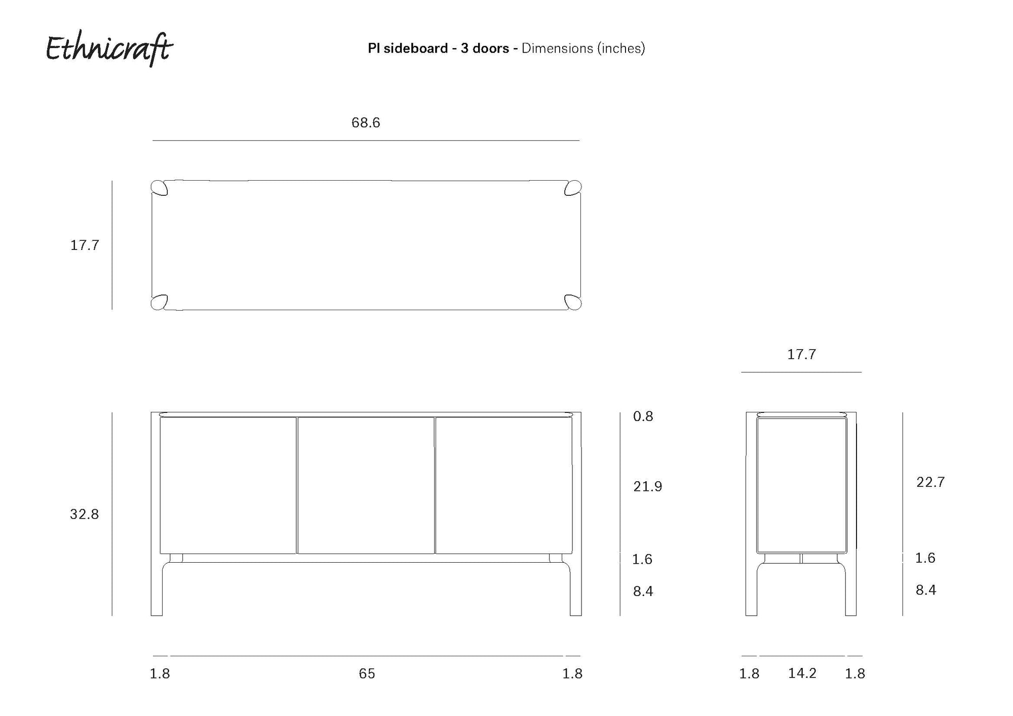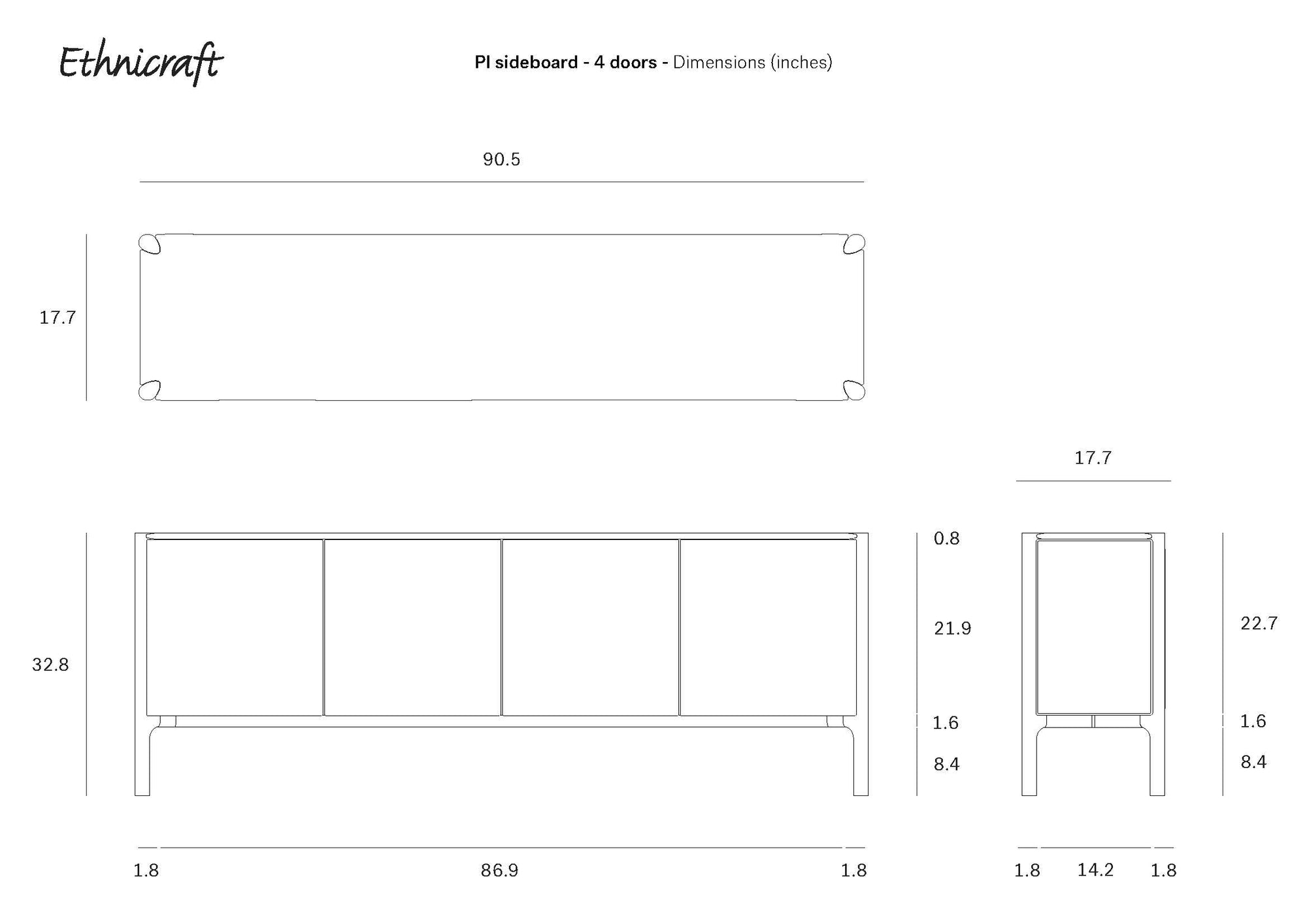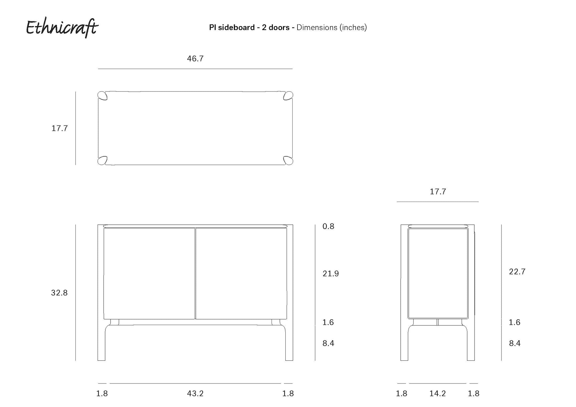 The PI collection honors nature’s design by keeping the strength, curves and lines, as nature intended. Interesting shapes are discovered in this sleek and stylish, polished imperfect, finish. Each PI item is finished by hand to ensure that the individual character of the wood is respected. The PI sideboard is striking and unique, with practical storage to complement a variety of spaces. Features push open doors. Made from dark brown-stained and brushed solid teak with a varnish finish.