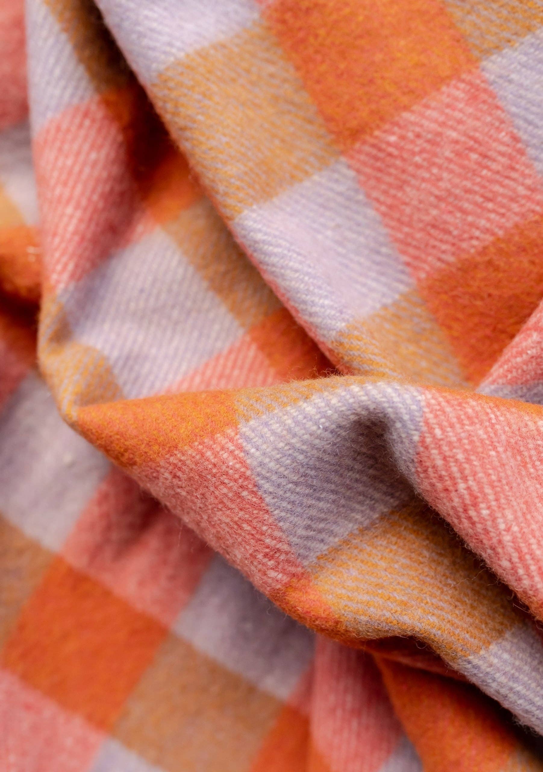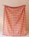 This vibrant TBCo blanket with fringe in an orange and lilac gingham pattern is the perfect super soft companion for cozy moments. The most popular throws at our Oakland shop!
