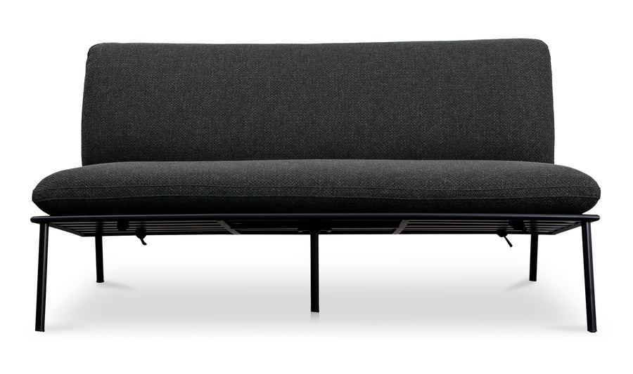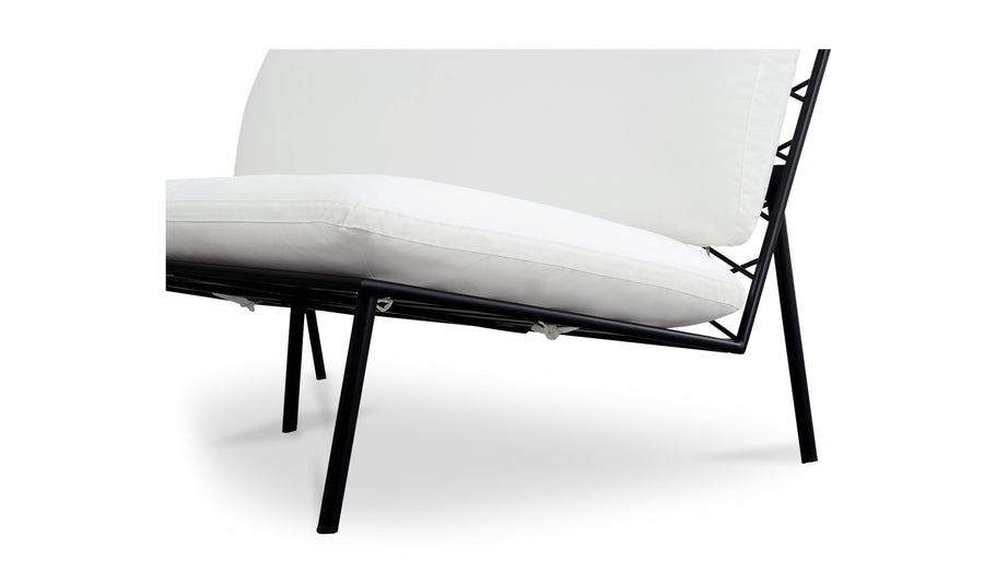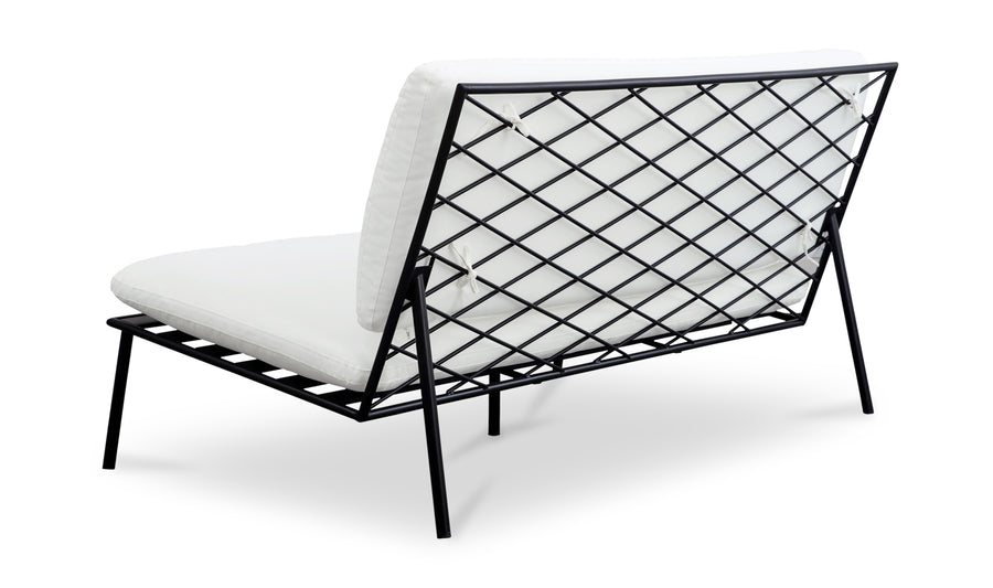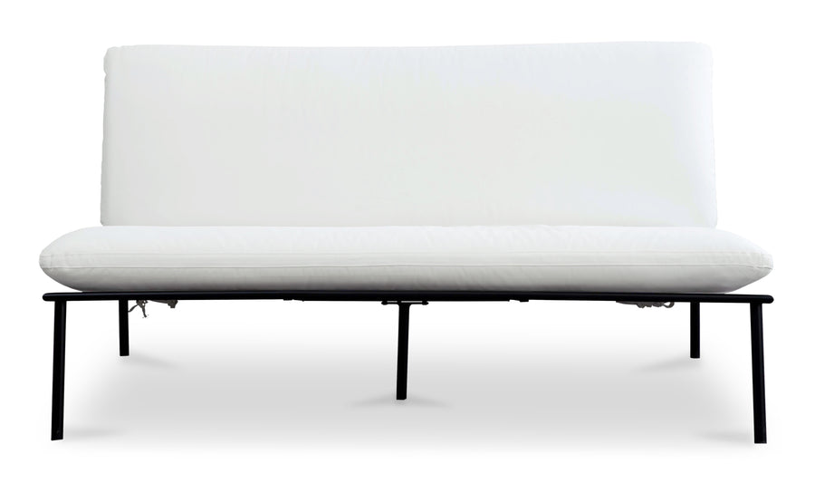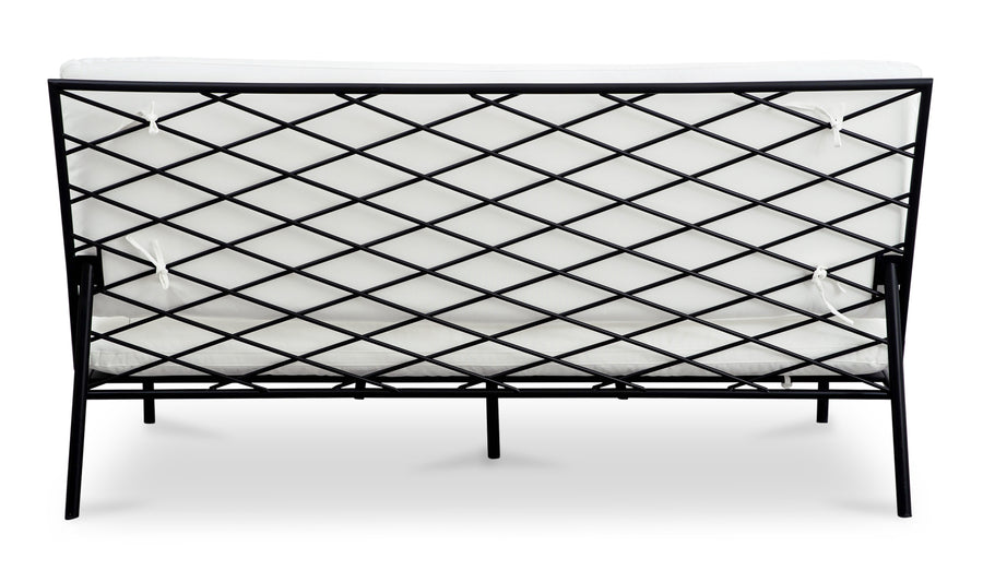 The Salma outdoor sofa’s armless design includes quick-dry foam cushions covered in 100% Olefin fabric that resists fading and includes ties for stability. It features a durable stainless-steel frame with elegant crisscross detailing. This piece combines superior comfort with exceptional weather resilience, making it perfect for outdoor use.