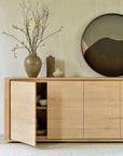 Crafted with solid European oak and a stunning oiled finish. With its sturdy construction and ample storage space, this sideboard not only adds style to any room, but also provides functionality for all your storage needs.