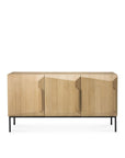 Solid European oak with a varnished finish for extra protection. Contract grade and suitable for high traffic use. Black metal base. 3 doors.