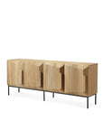 Solid European oak with a varnished finish for extra protection. Contract grade and suitable for high traffic use. Black metal base. 4 doors.
