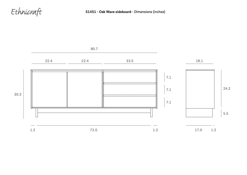 The subtle contours of the cabinet doors and the distinguished shape of the feet are what make the Wave collection so special. Made of solid wood, this sideboard’s doors and drawers have no handles and feature a soft closing mechanism.