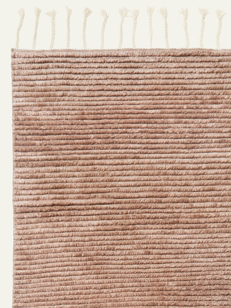 Malawi evokes novelty and nostalgia with rows of hand-knotted wool framed by a tasseled fringe. The ribbed pile, now an undulating canvas for painterly hues, has an artisanal feel designed to bloom and blend with time. Delightfully soft and supple, this beloved style oozes barefoot comfort.
